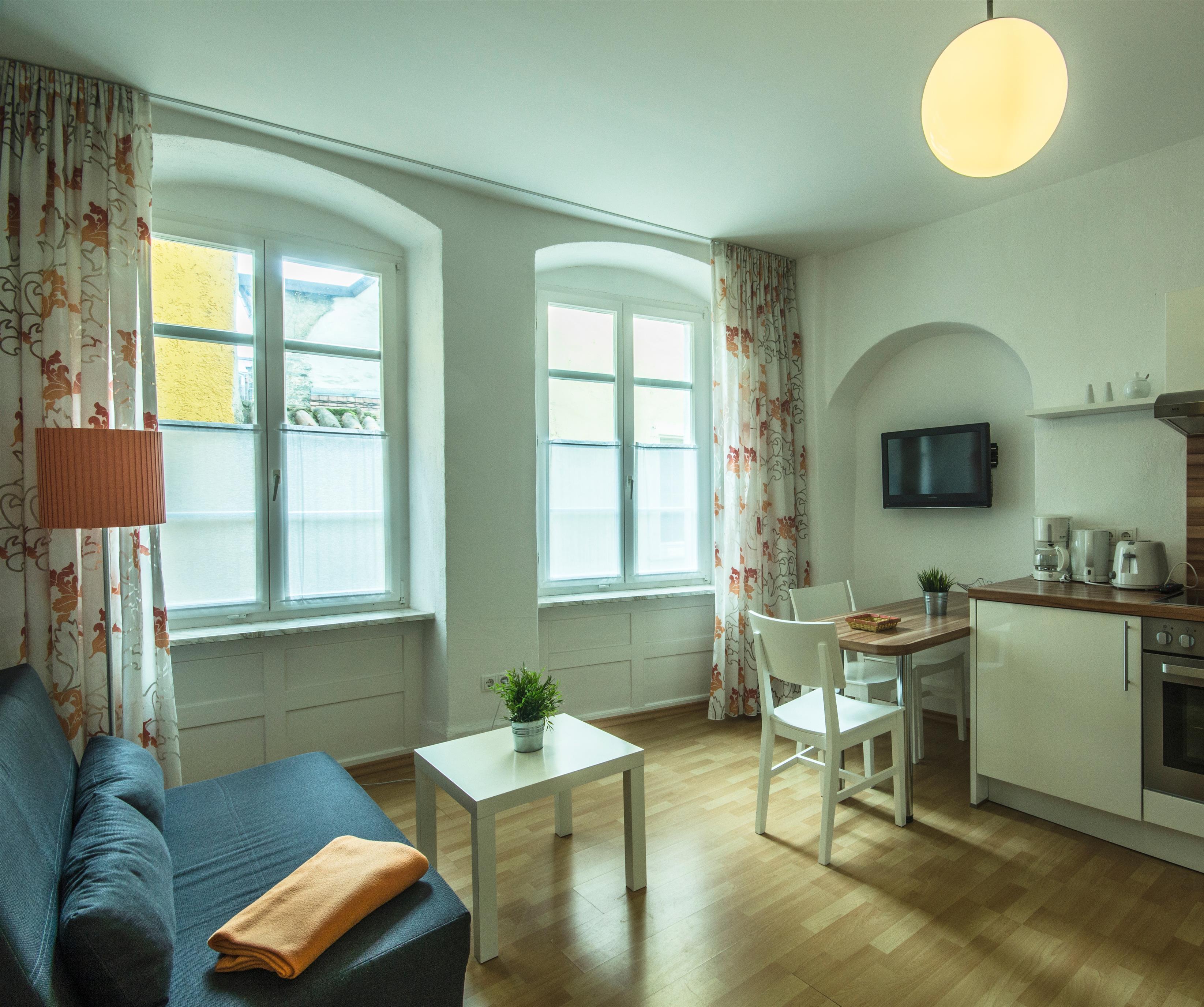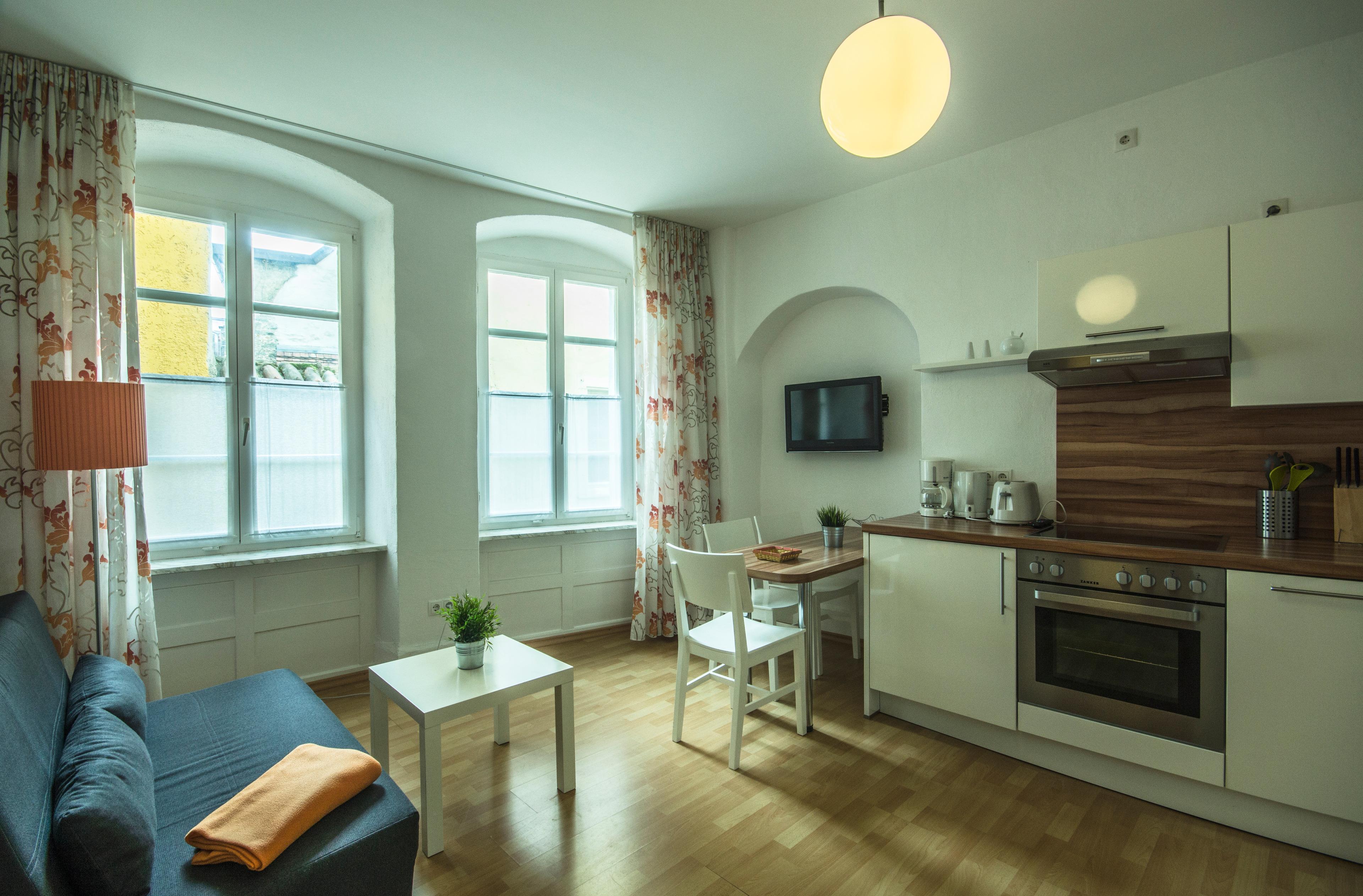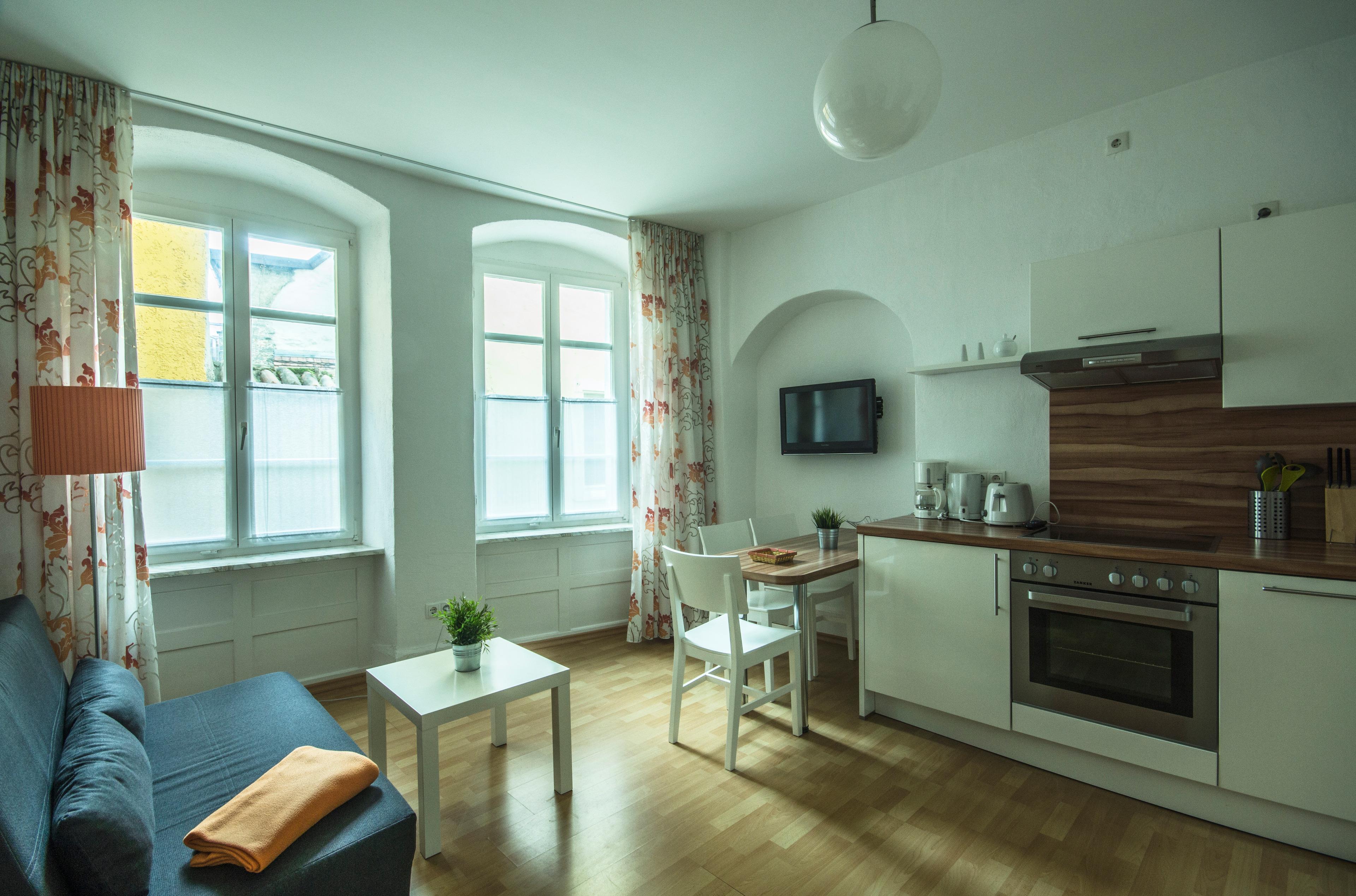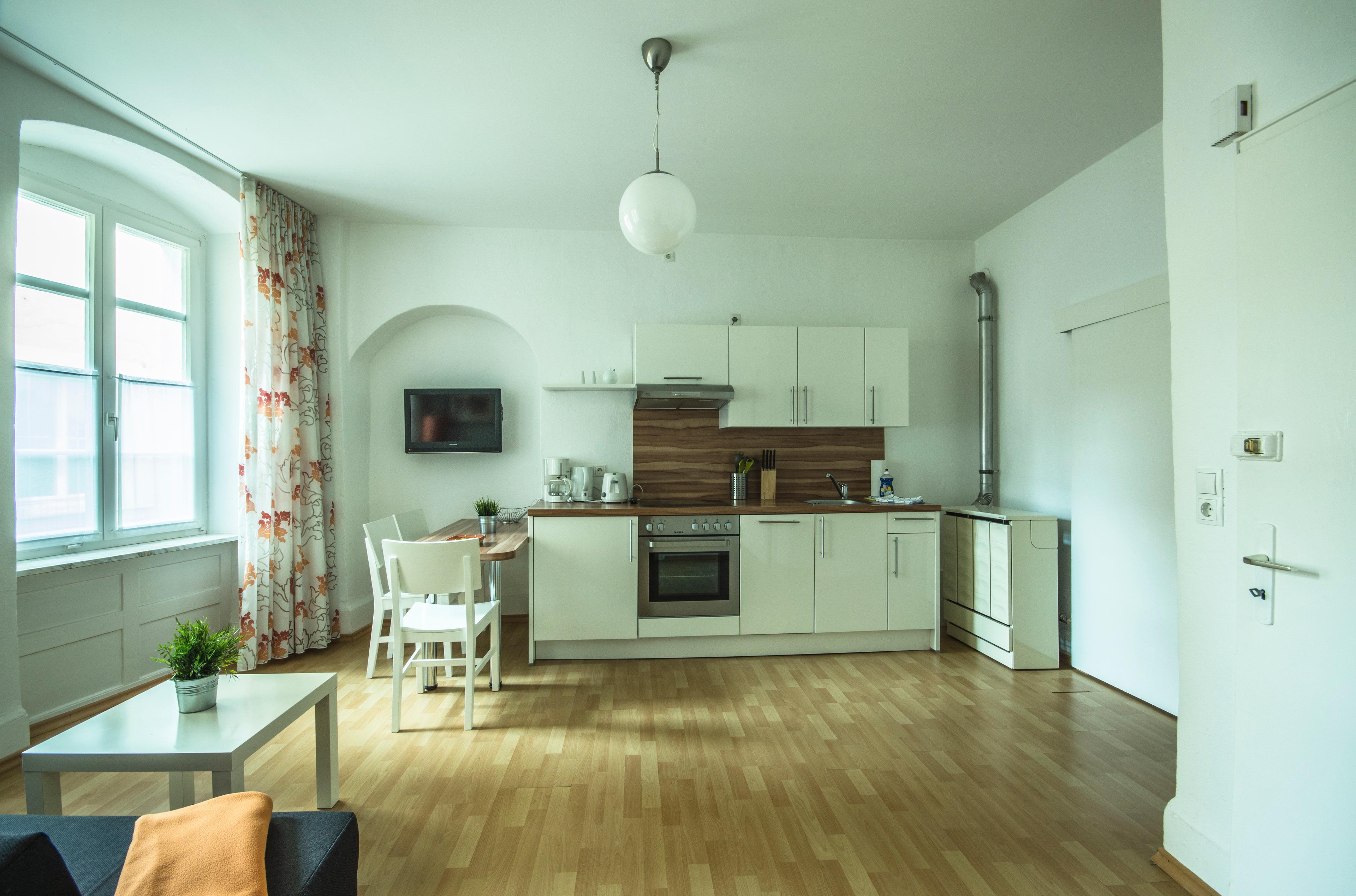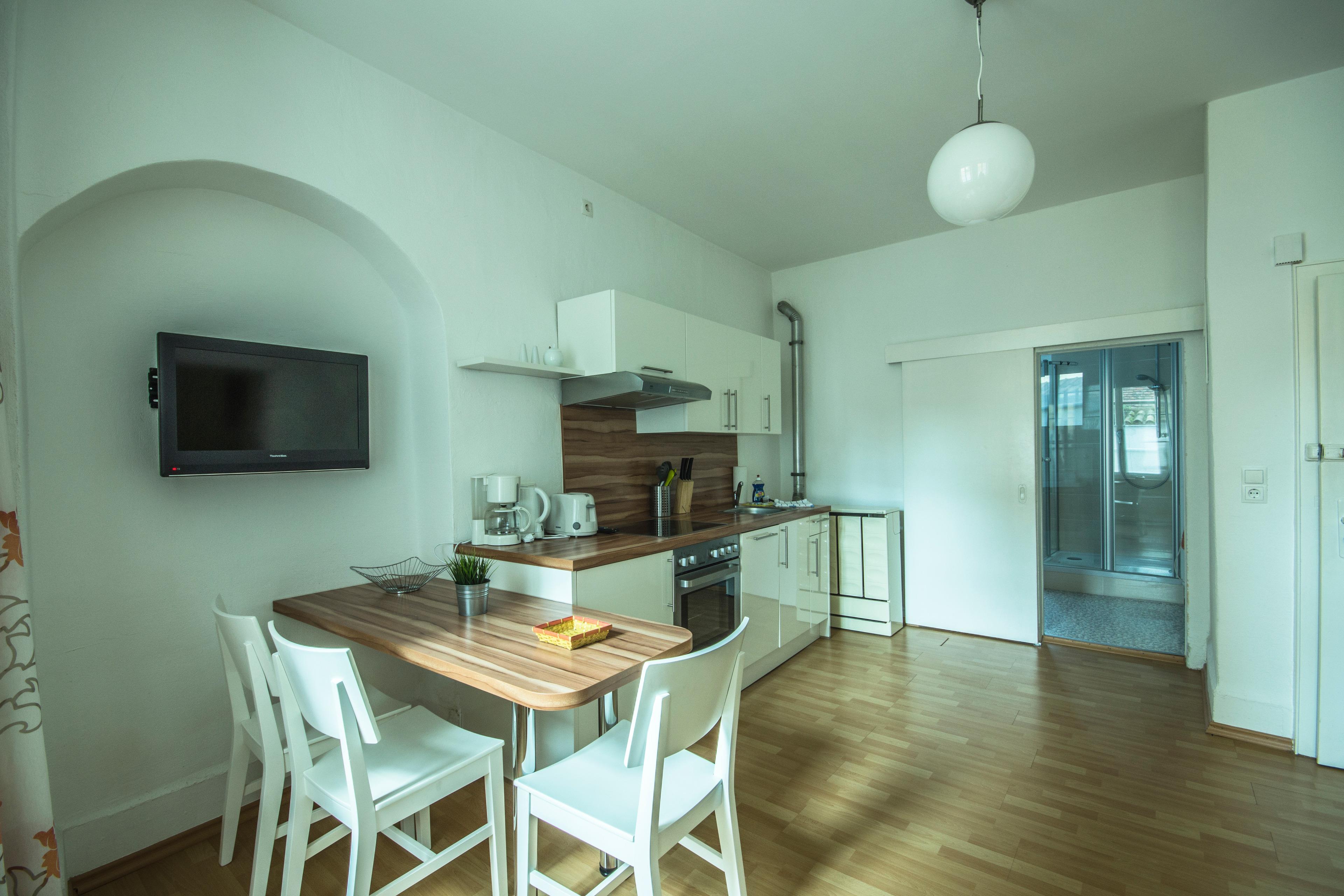 Fühlen Sie sich eingeladen, in der voll ausgestatteten Wohnküche gemütlich zu sitzen, zu kochen und zu genießen.