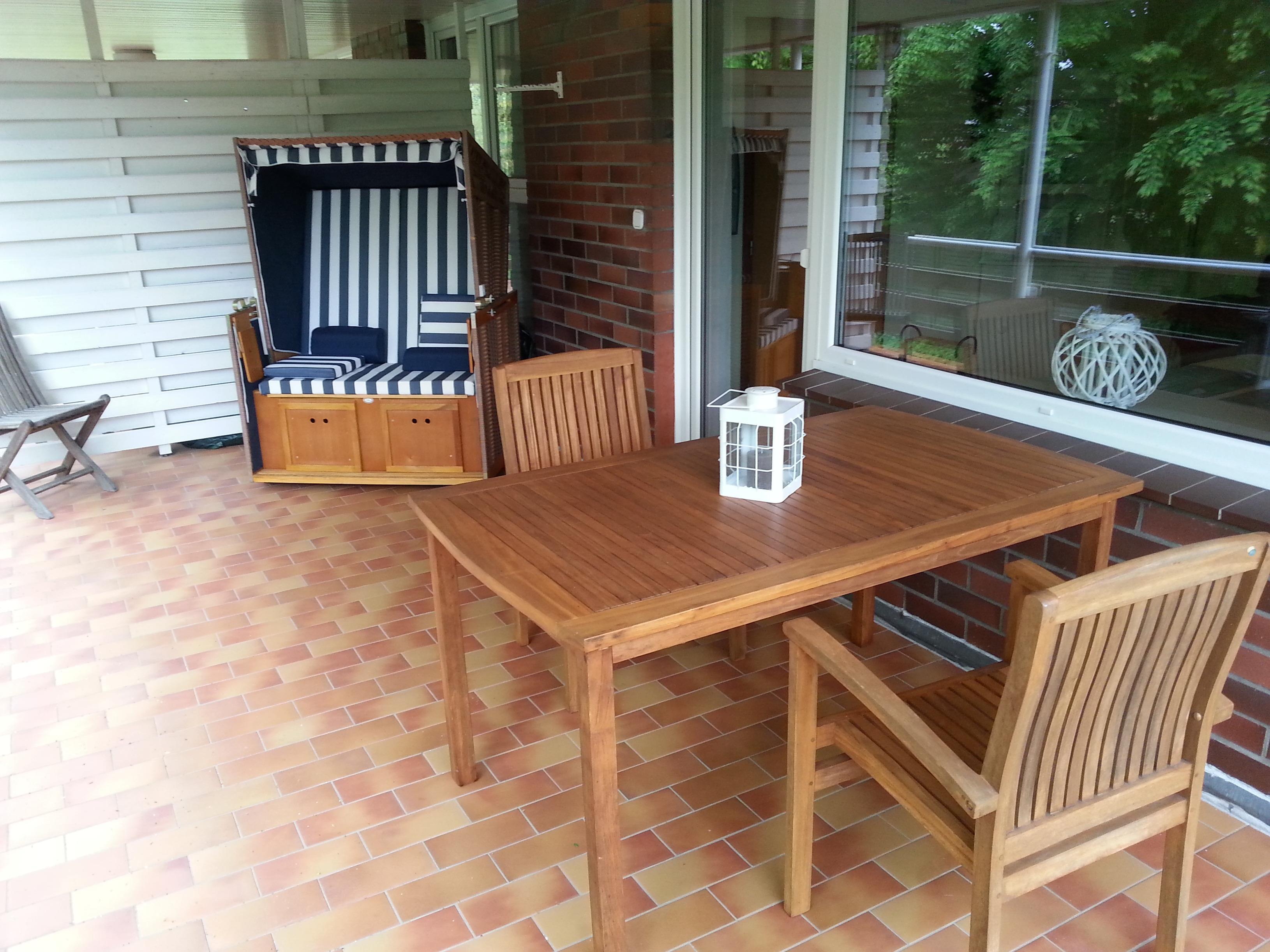 Unsere beiden Ferienwohnungen sind modern und gemütlich eingerichtet und beide Wohnungen verfügen über eine schöne große überdachte Terrasse mit einem Strandkorb und Sitzmöbeln sowie einem Gasgrill. Die Wohnungen befinden sich im Erdgeschoss /Hochparterre (5 Stufen). Pro Wohnung steht ein PKW-Stellplatz vor dem Haus zur Verfügung. Hinten im Garten befindet sich ein Fahrradhaus, in dem man bequem die Räder unterstellen und E-Bikes aufladen kann. Im Keller des Hauses befinden sich eine Waschmaschine und ein Trockner (Nutzung gegen Entgeld).
