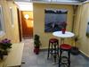 Im Küchenbereich steht noch ein Hochtisch mit 2 Hochstühlen, an dem man auch gemütlich sitzen kann.