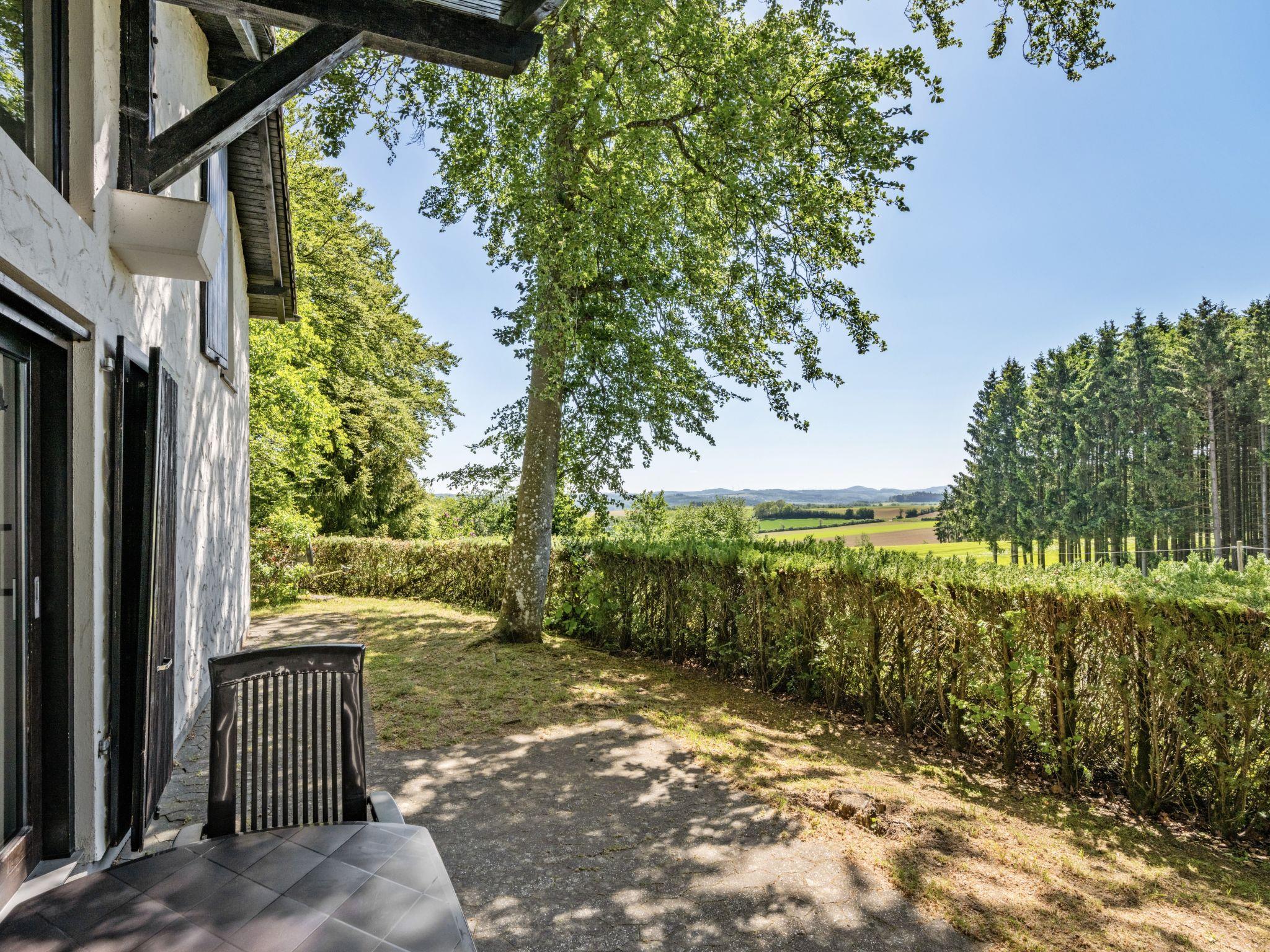 Das Außengelände unseres Ferienhauses verspricht pure Entspannung. Es befindet sich in einer Höhenlage mit teilweise 40 km weitreichender Aussicht und ist umgeben von einem eingezäunten Grundstück mit reichem Baumbestand. Eine überdachte Gartenterrasse mit Gartenmöbeln und -bänken lädt zum Verweilen und Genießen der friedvollen Atmosphäre ein.