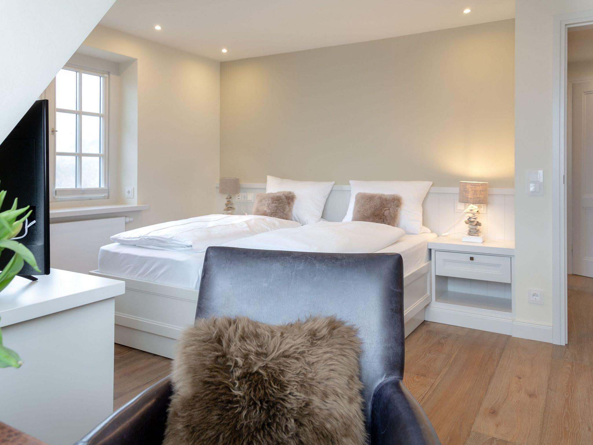 Eine Perle Lister Urlaubskultur: Das Haus Süderhörn ist gerade neu erbaut. Die Farben der Natur und das hochwertige Interieur versprechen einen erholsamen Urlaub in List auf Sylt. Das Ferienhaus Süderhörn ist ein Haus unter Reet für bis zu 6 Personen, das Sie mit dem coolen Mix aus modernen Holzeinbauten und edlen Materialien begeistern wird. Der Wohnbereich mit Kamin sowie der große Esstisch versprechen gemütliche Abende oder kulinarische Tafelfreunden, diese lassen sich in der perfekt und hell gestalteten Küche zubereiten dazu ein guter Wein aus dem Weinkühlschrank mehr geht nicht und ein Thermomix ist auch vorhanden. Im Ober- und Untergeschoss geht es ruhiger zu , denn hier wird geschlafen und entspannt. In zwei Schlafzimmern (Obergeschoss) bzw. einem Schlafzimmer (Untergeschoss), die sich stilvoll in ihren Farben präsentieren. Das Elternschlafzimmer verfügt über ein Fernseher sowie ein perfekt ausgestatteten begehbaren Kleiderschrank.Das Haus verfügt insgesamt über drei Duschbäder eines davon mit Badewanne sowie eine geräumige Sauna , ein Gäste WC , Hauswirtschaftraum mit Waschmaschine und Trockner sind ebenfalls vorhanden.