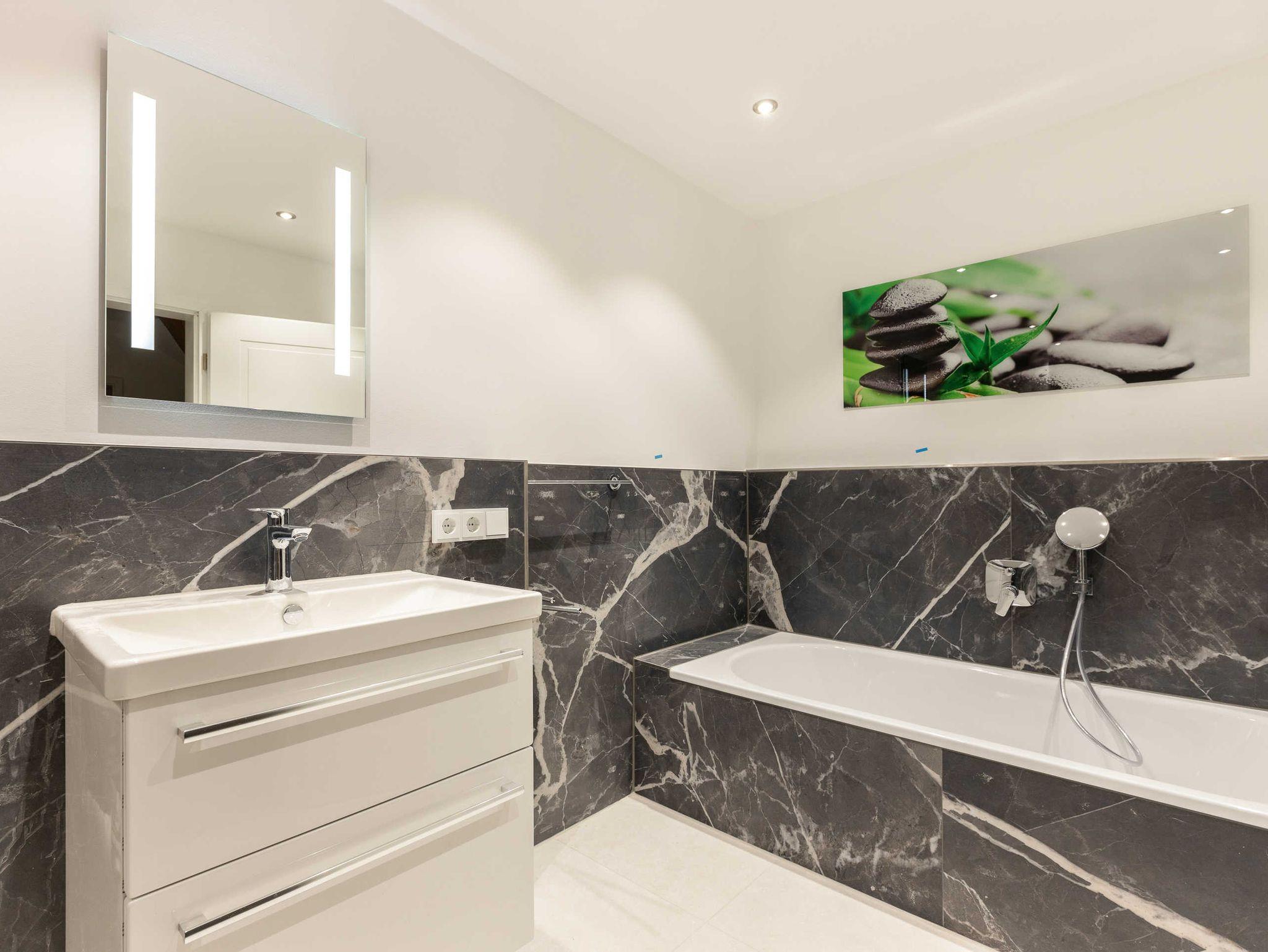 Eine Besonderheit: Die Unterkunft ist vollständig unterkellert. Im Keller befinden sich eines der drei Schlafzimmer, ein Hauswirtschaftsraum sowie ein Vollbad. Zwei weitere Duschbäder sind in den oberen Etagen untergebracht.