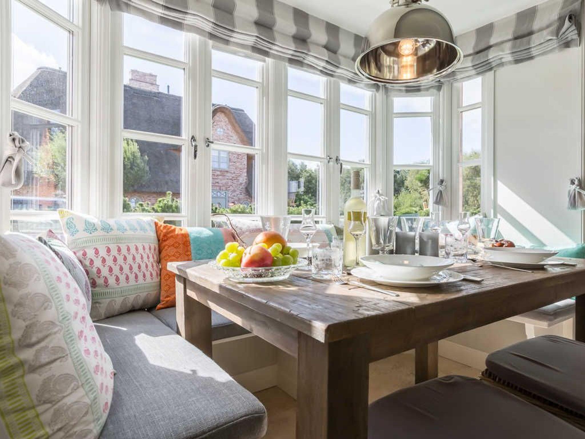 Stilvoll entspannen: in unserem wunderschönen Ocean House wird dieser Anspruch auf ganzer Linie erfüllt. Das reetgedeckte Ferienhaus in List im Stil einer friesischen Kate bietet auf 160 qm bis zu 4 Personen viel Raum und Platz für einen Aufenthalt der Extraklasse. Der großzügige, lichtdurchflutete Wohnbereich erstreckt sich fast über das gesamte Parterre und schafft mit seiner geschmackvollen Einrichtung eine besondere Atmosphäre zum Wohlfühlen. Für kulinarische Auszeiten steht eine offene Küche mit Komplett-Ausstattung zur Verfügung,