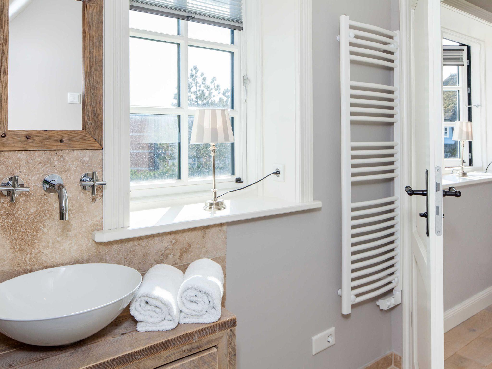 Das Badezimmer besitzt sowohl eine Dusche wie eine Badewanne für ein entspannendes Schaumbad nach