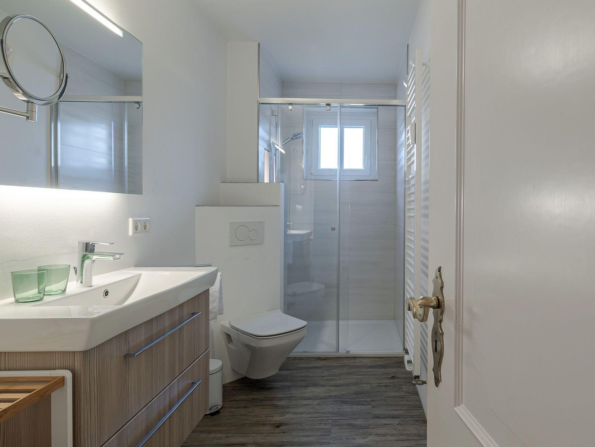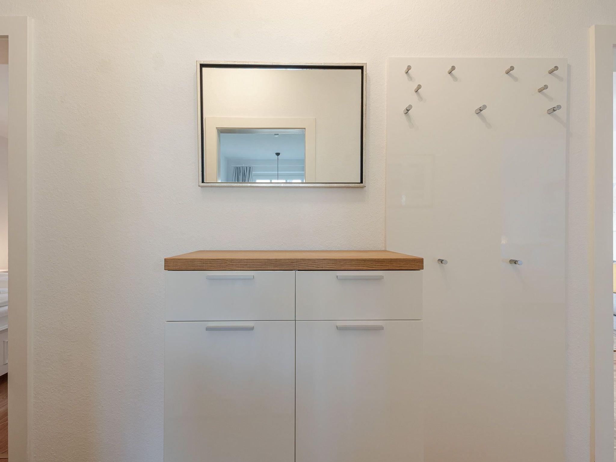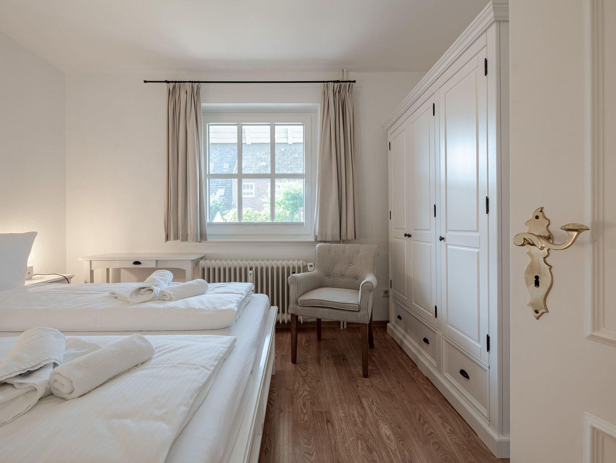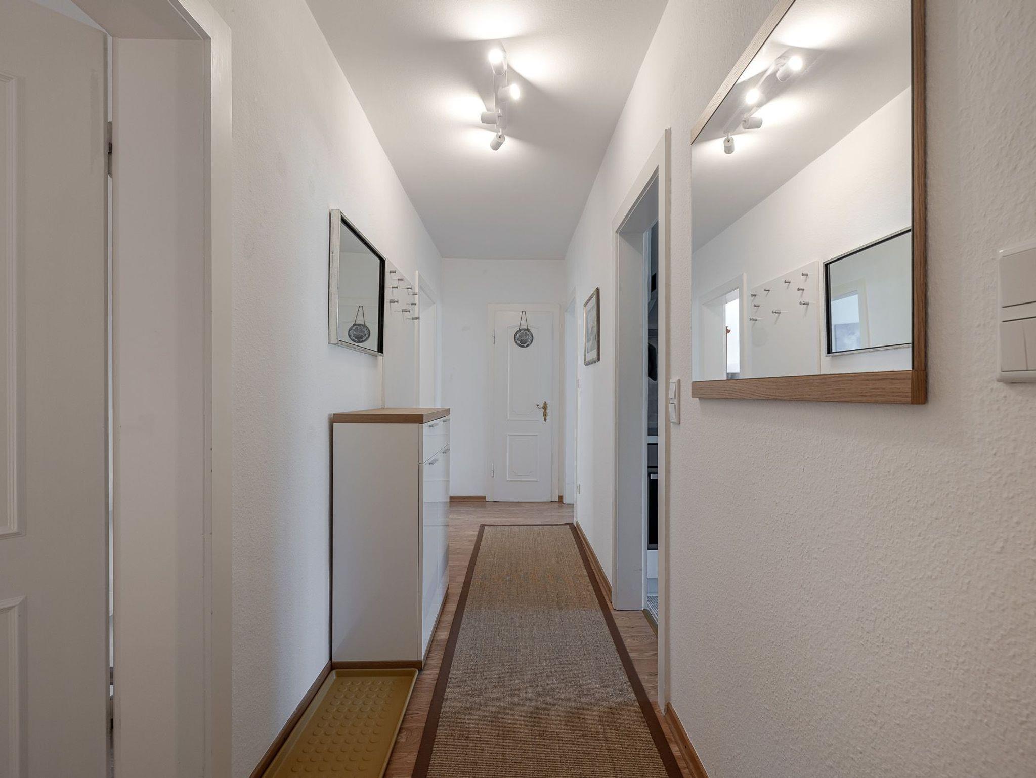 Die Wohnung verfügt über zwei gemütliche Schlafzimmer sowie ein modernes Badezimmer mit einer komfortablen, bodentiefen Dusche. Die voll ausgestattete Küche verfügt nicht nur über eine Spülmaschine, sondern auch eine Waschmaschine ? ideal auch für längere Aufenthalte. Im angrenzenden Wohnzimmer lädt die großzügige 3 Personen Couch mit Recamiere zum Entspannen ein.