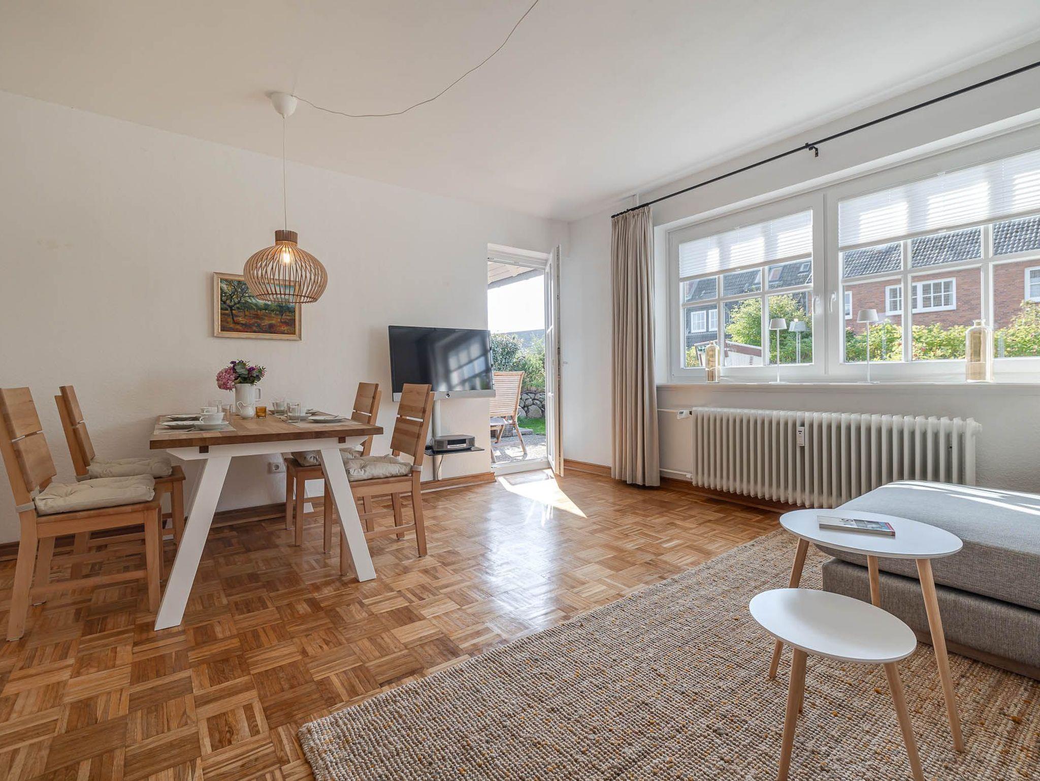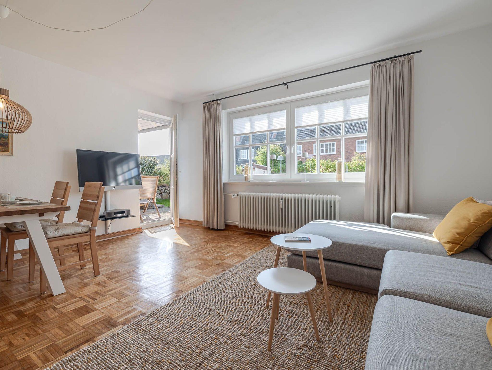 Diese liebevoll eingerichtete Ferienwohnung auf Sylt bietet mit eigenem Garten und moderner Ausstattung erholsame Tage an der Nordsee.