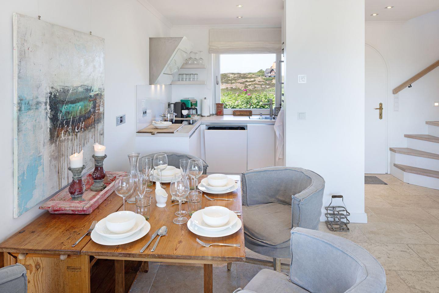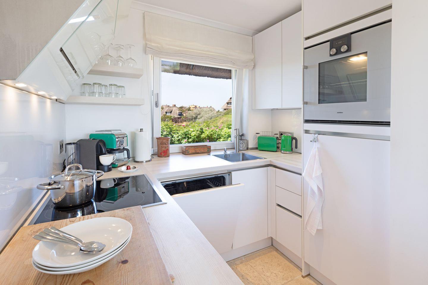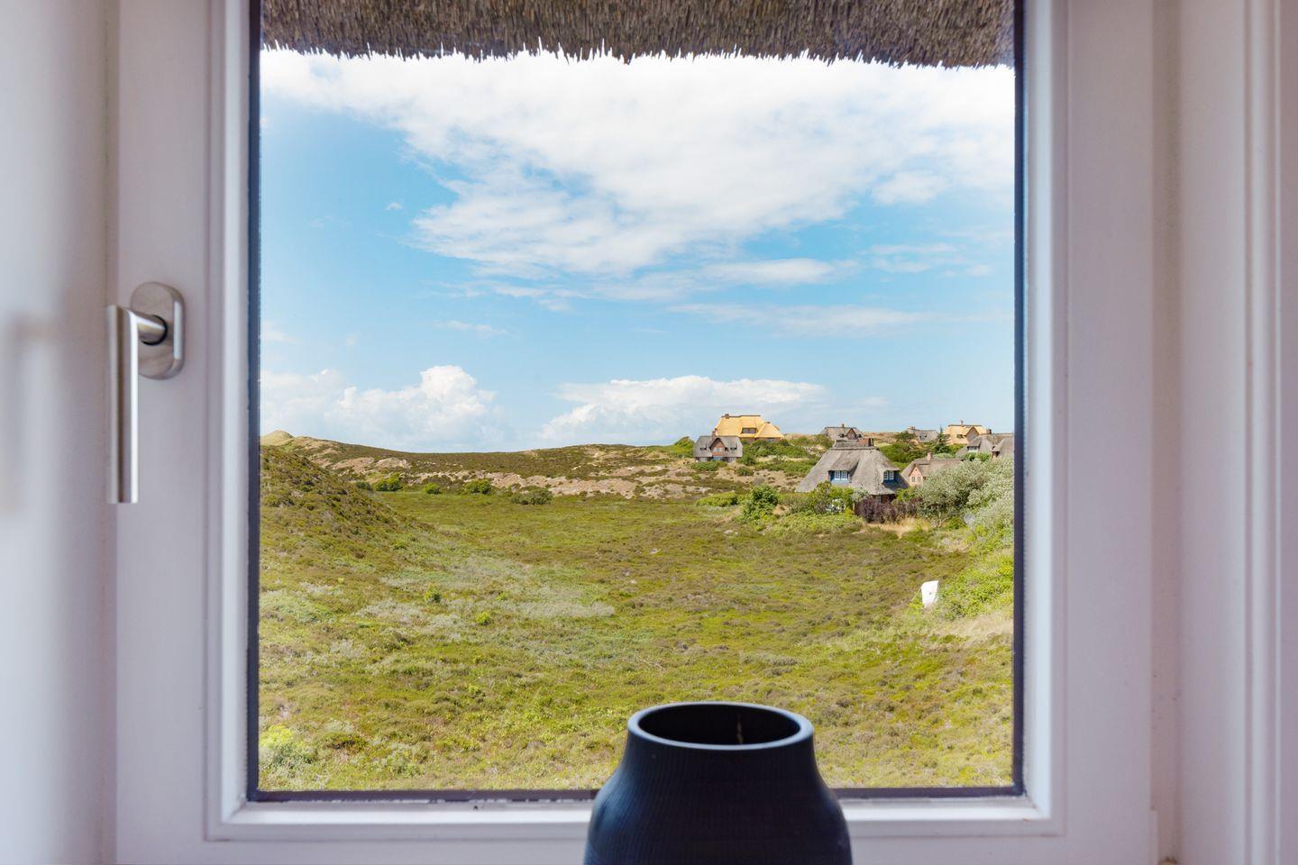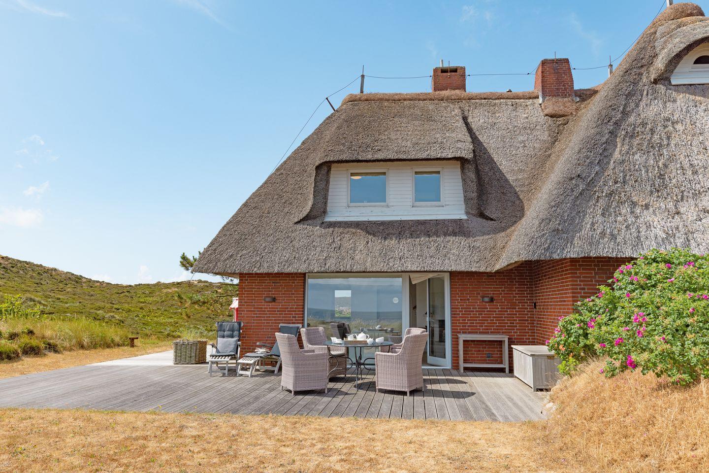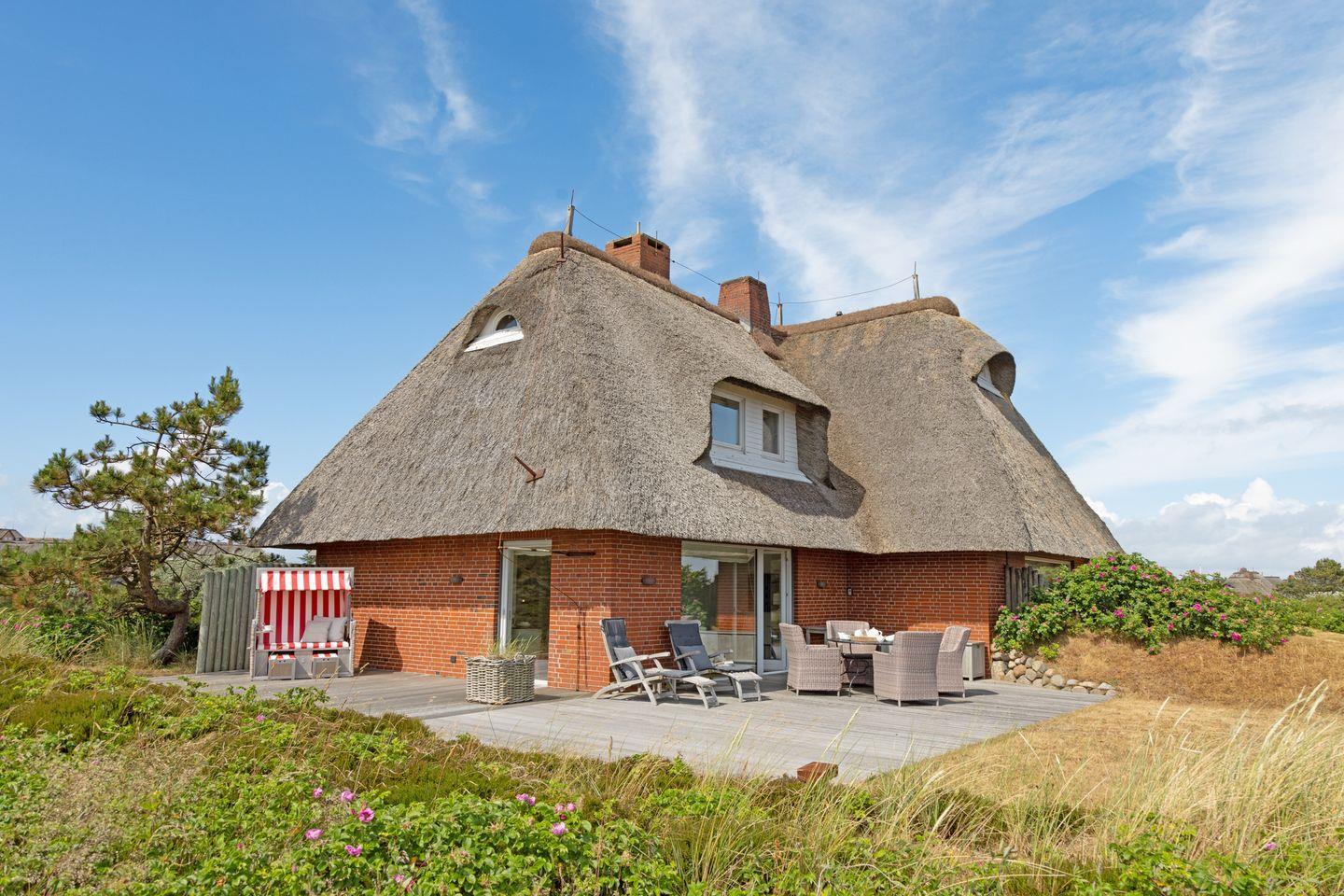 Modernes Reetdach-Ferienhaus in List auf Sylt mit Meerblick und gemütlicher Terrasse für bis zu drei Personen.