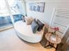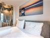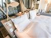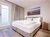DG: ein Raum mit Doppelbett (1,80 x 2,00 m) und TV, eigener Balkon, offenes Duschbad mit separatem WC, Saunabereich mit Balkon.