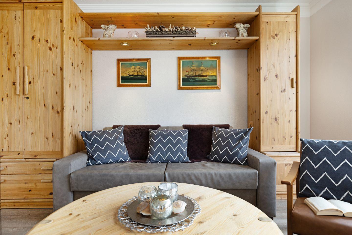 Die Ferienwohnung verfügt über ein Schlafzimmer mit Doppelbett und eine große Schlafcouch mit zusätzlichem Topper im Wohnzimmer.