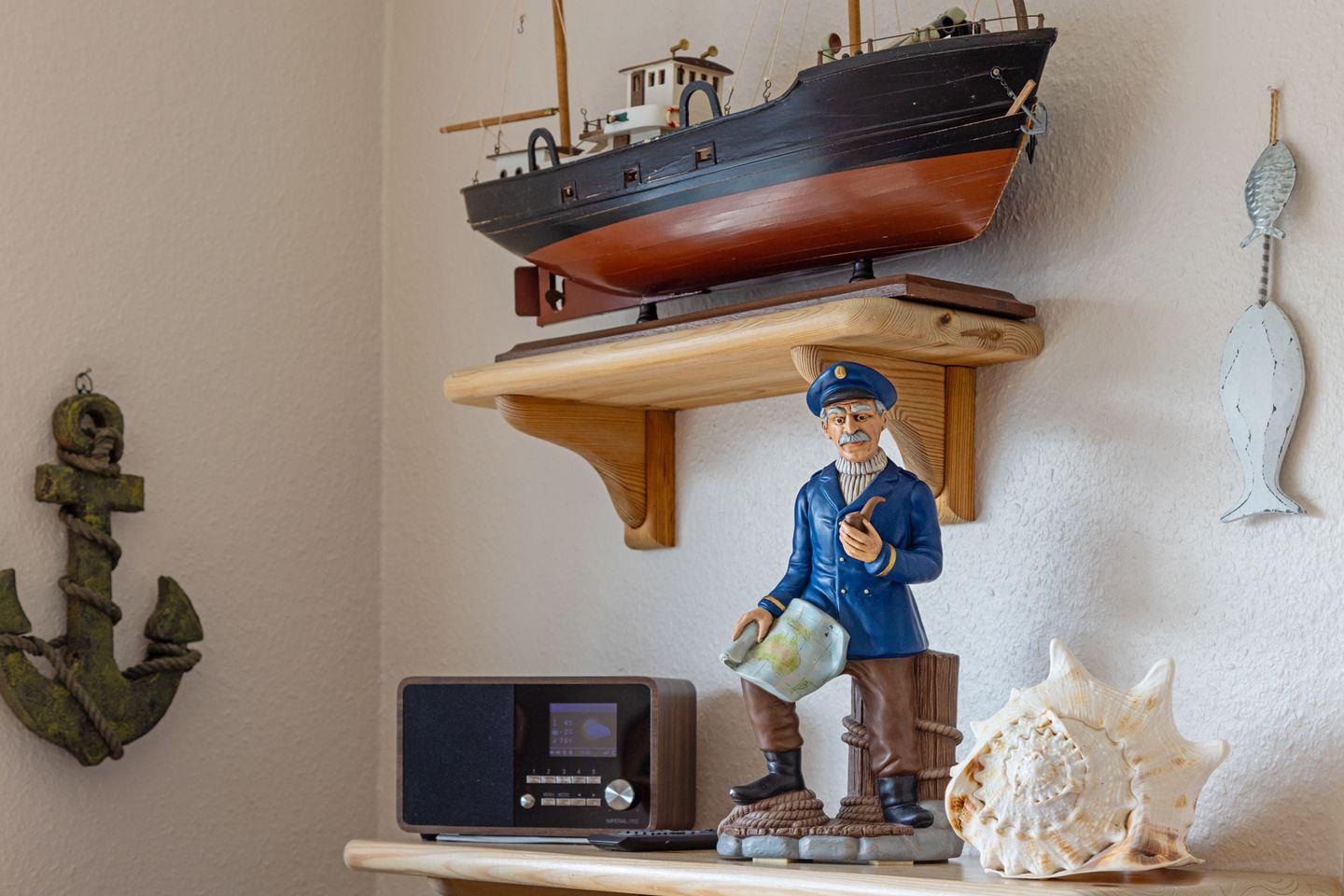 Liebevoll eingerichtetes Appartement im Erdgeschoss mit Gartenterrasse und Strandkorb.