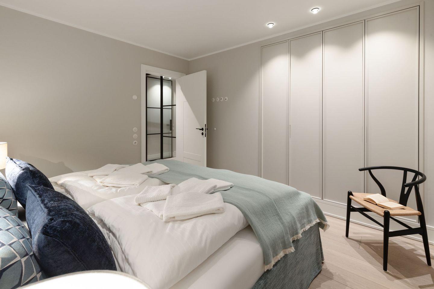 Ein weiteres Schlafzimmer mit Fernseher befindet sich im Untergeschoss. Hier finden Sie ebenfalls das Highlight des Hauses.