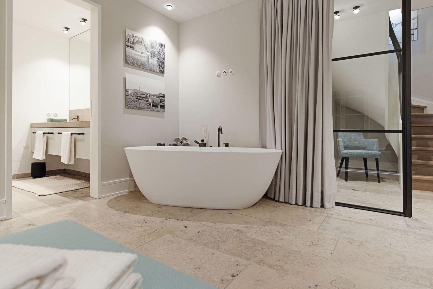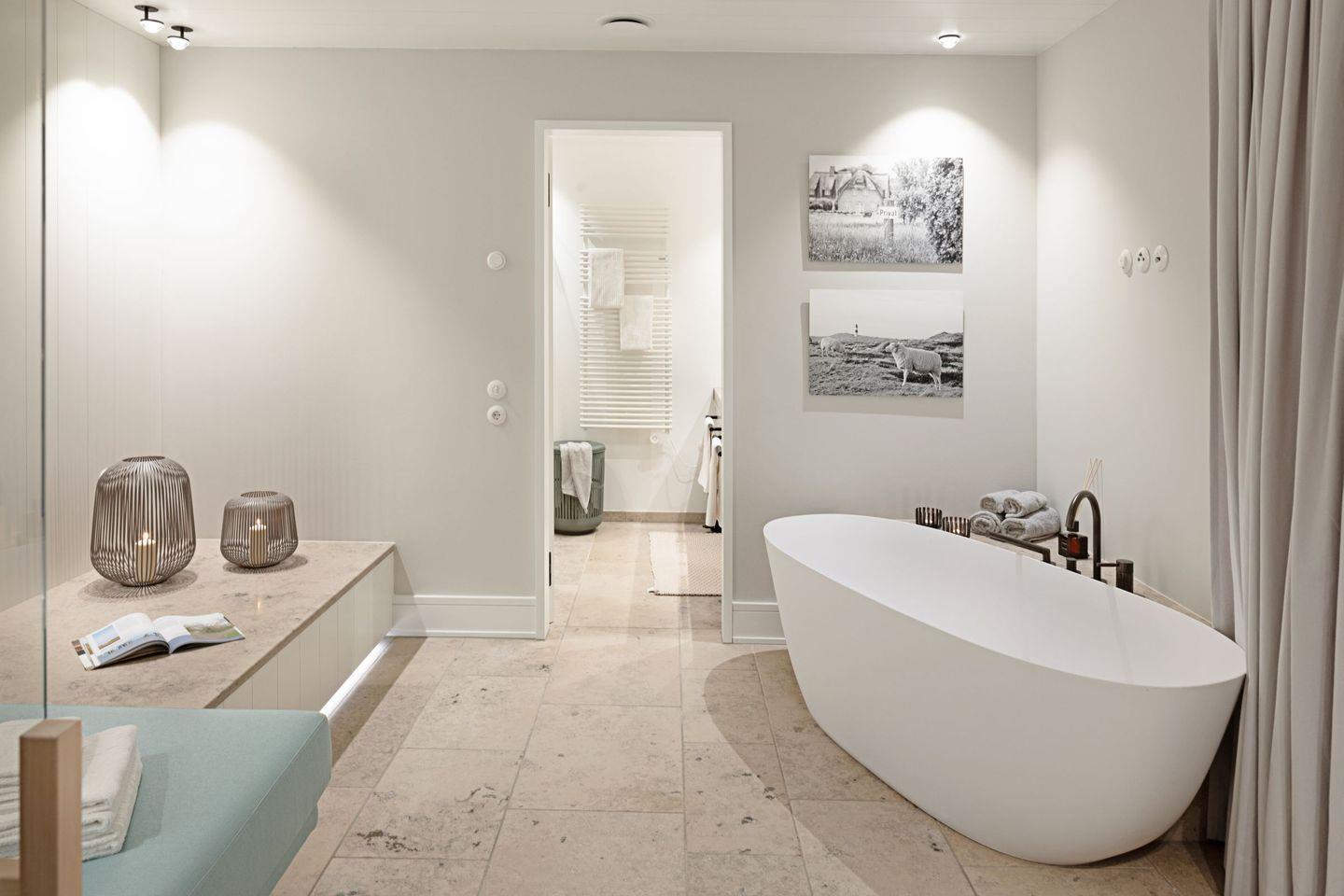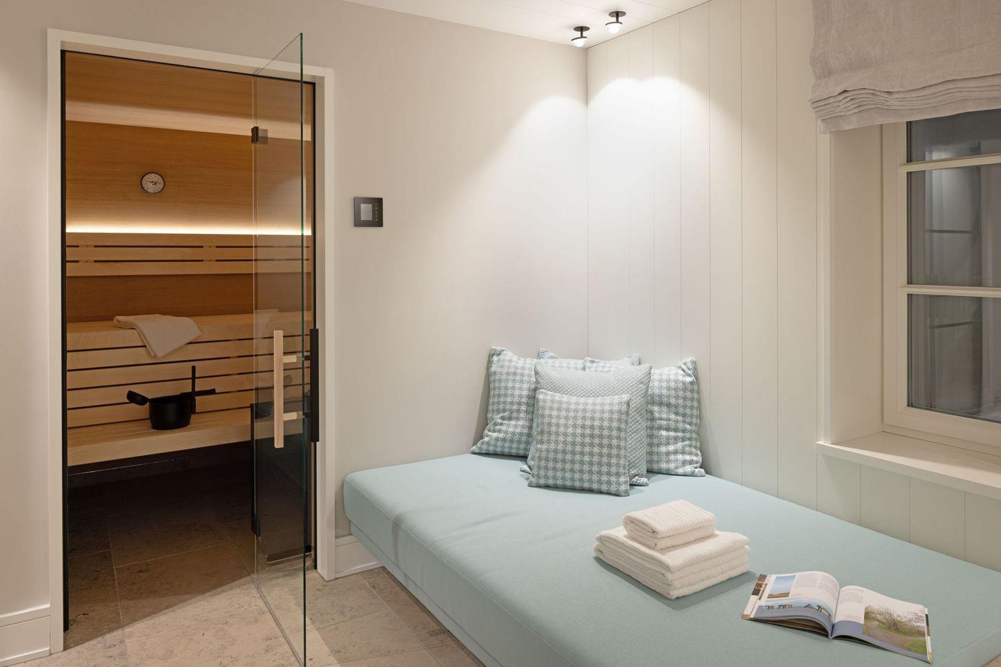 Der große Wellnessbereich mit Sauna, freistehender Badewanne und Sitzecke bietet Ihnen viele Möglichkeiten zum entspannen.