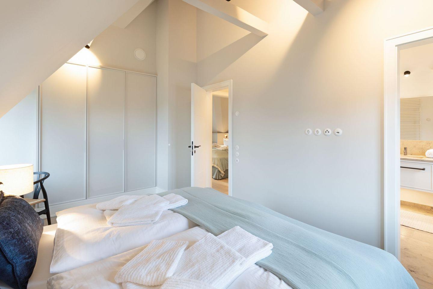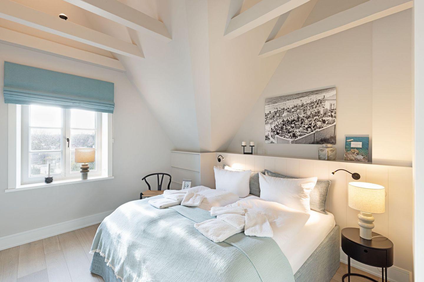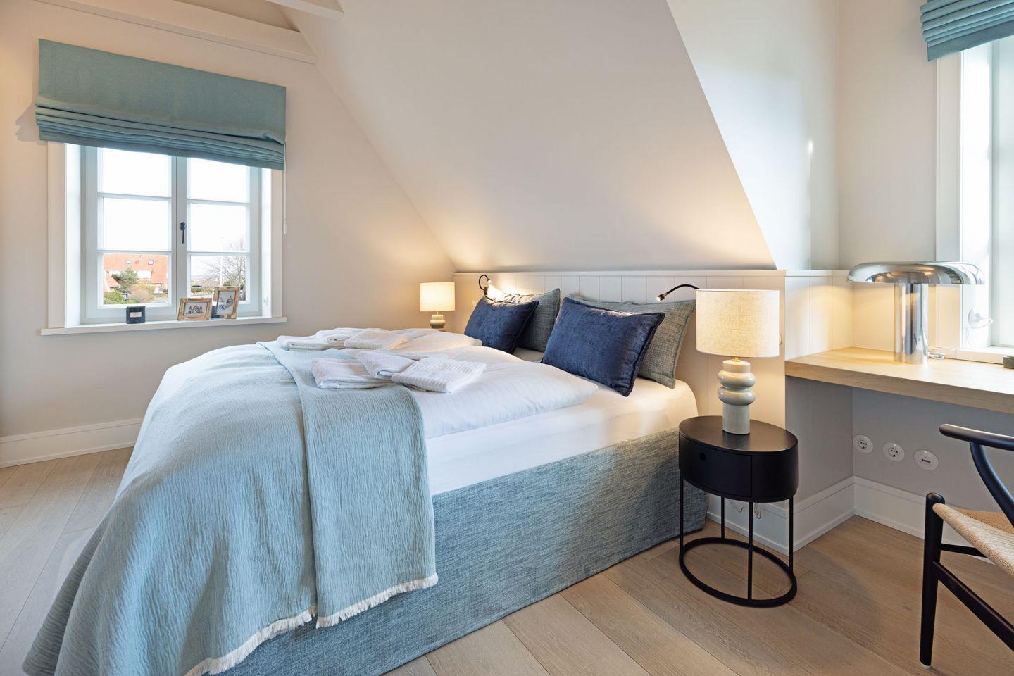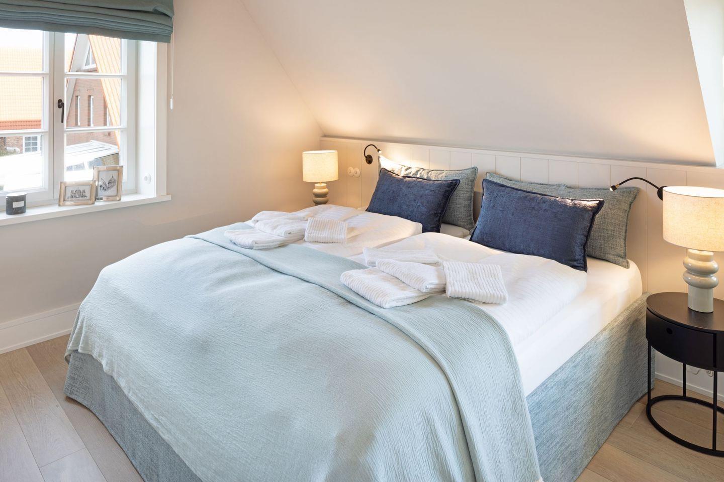 Im Dachgeschoss des Hauses finden sie zwei Schlafzimmer mit Doppelbett und Fernseher.