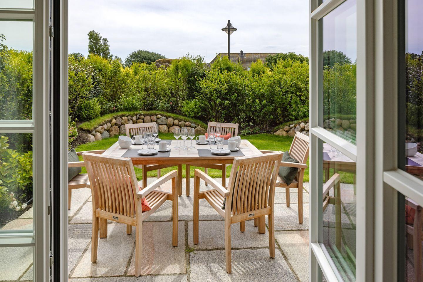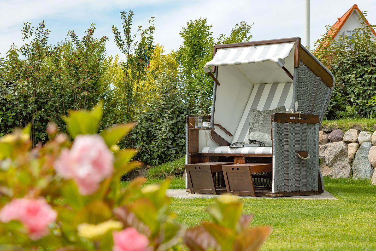 Gartenmöbel und ein Strandkorb stehen Ihnen saisonal begrenzt zur Verfügung.