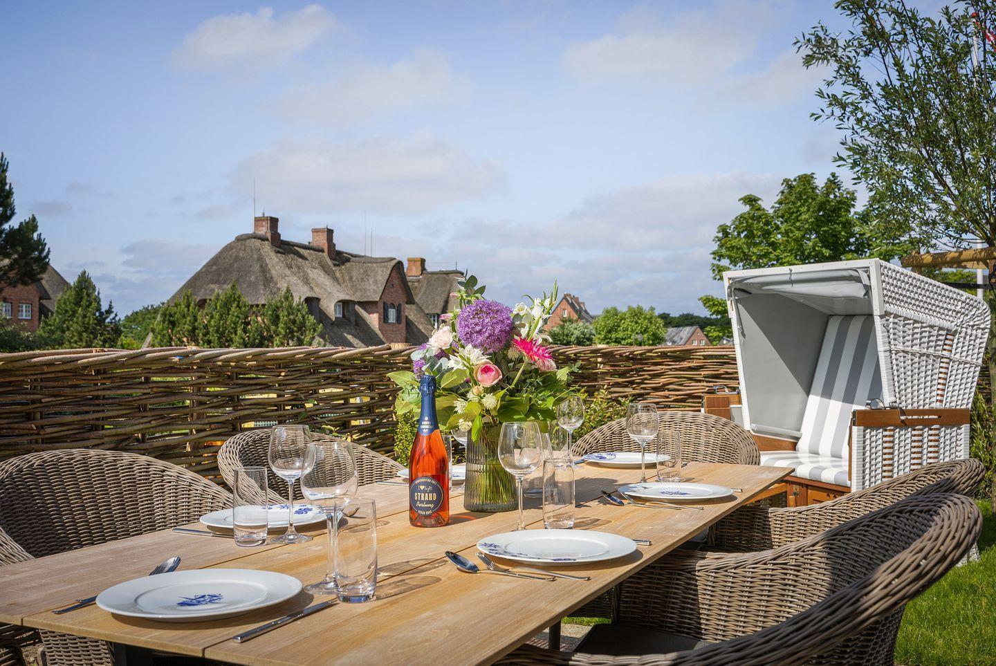 Luxuriöse Doppelhaushälfte unter Reet in List auf Sylt mit Sauna, Kamin und Garten, nur 550 m vom Strand entfernt.
