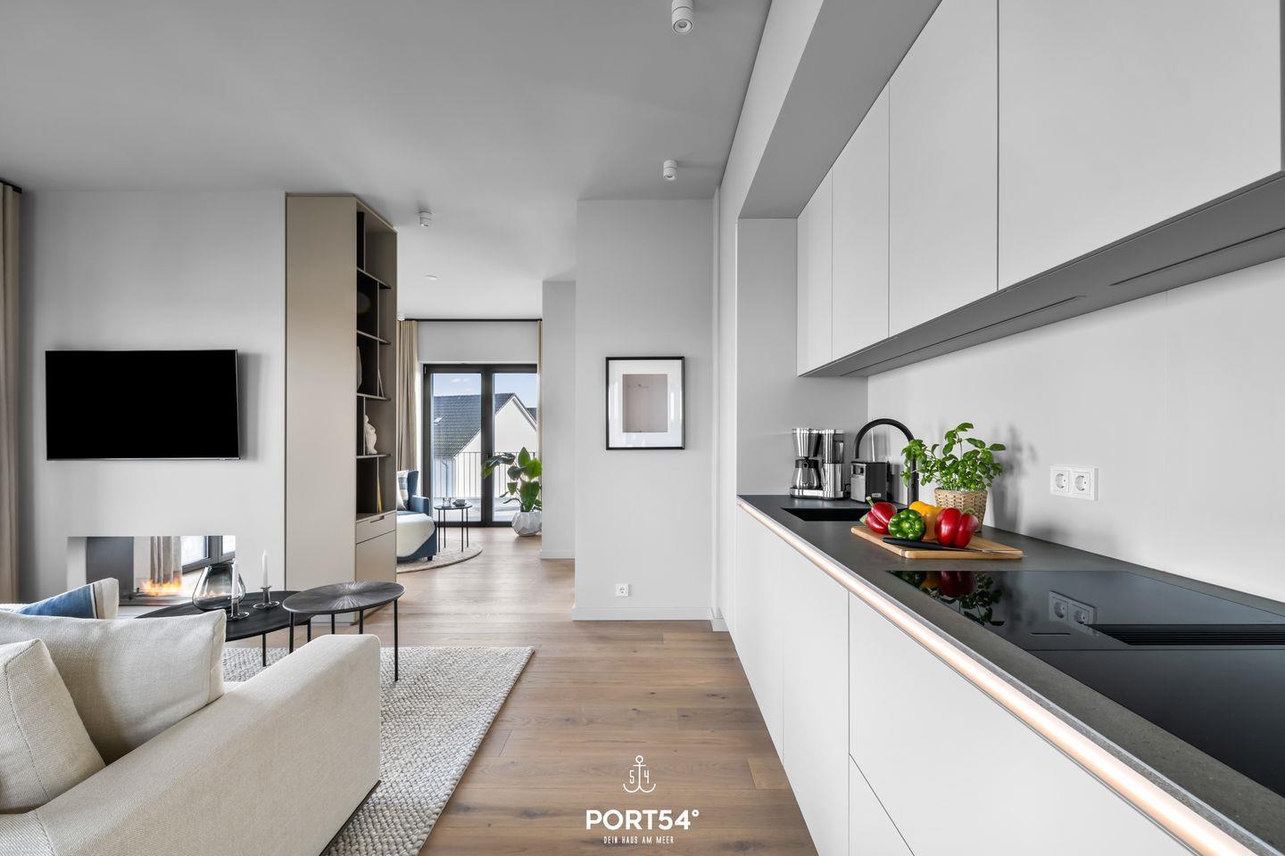 Die elegante Ferienwohnung verfügt über ein stilvolles Schlafzimmer mit einem 180x200cm großen Doppelbett sowie ein luxuriöses Badezimmer mit bodengleicher Dusche, die für unbeschwerte Wohlfühlmomente sorgt. Die Dusche ist mit einer Infrarotsauna ausgestattet, perfekt um nach einem ausgiebigem Spaziergang zu entspannen. Der offene Wohnbereich, der Küche und Wohnzimmer harmonisch vereint, lädt zu entspannten Kochabenden ein. Die moderne Küche von SieMatic ist mit einem Induktionsherd, Backofen, Wärmeschublade und einem Geschirrspüler voll ausgestattet. Außerdem finden Sie in der Küche einen Quooker, damit lässt sich problemlos heißes Wasser, sowie Sprudelwasser erzeugen. Das Wohnzimmer ist der perfekte Ort zur Entspannung – hier können Sie die Wohnlichkeit des Ethanol Kamins und den Komfort des Sofas erleben.