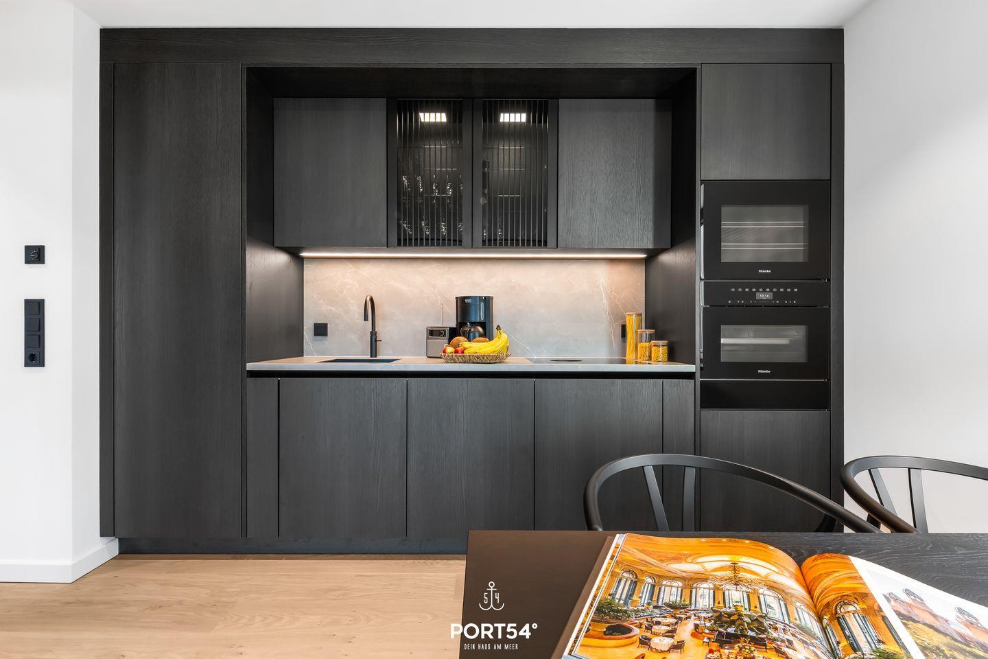 Die modern gestaltete Wohnung verfügt über ein geräumiges Schlafzimmer, das 180x200cm große Bett bietet Ihnen hierbei optimalen Schlafkomfort. Ein stilvolles Badezimmer mit bodengleicher Dusche ermöglicht es Ihnen, nach einem erlebnisreichen Tag an der Küste entspannen zu können. Der offene Wohnbereich mit einer voll ausgestatteten Küche lässt keine Wünsche offen: Induktionsherd, Backofen, Spülmaschine und zahlreiche Küchenutensilien sind vorhanden, sodass Sie Ihren kulinarischen Ideen freien Lauf lassen können. Genießen Sie Ihre Mahlzeiten am Esstisch oder auf dem gemütlichen Sofa. Die Küche von SieMatic ist außerdem mit einem Quooker ausgestattet, damit lässt sich problemlos heißes Wasser, sowie Sprudelwasser erzeugen.