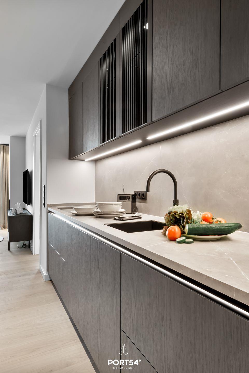 Die Ferienwohnung befindet sich im ersten Stock und ist bequem über einen Aufzug erreichbar. Ein großzügiger Wohnraum mit einer offenen Küche lädt dazu ein, kulinarische Köstlichkeiten zuzubereiten und gesellige Abende zu verbringen. Die hochmodernen Küchengeräte, einschließlich einer Spülmaschine, Elektrobackofen und einem Quokker, damit lässt sich problemlos heißes Wasser, sowie Sprudelwasser erzeugen, lassen keine Wünsche offen und ermöglichen es Ihnen, sich wie zu Hause zu fühlen. Der Esstisch bietet genügend Platz, um gemeinsam zu speisen und schöne Erinnerungen zu schaffen.