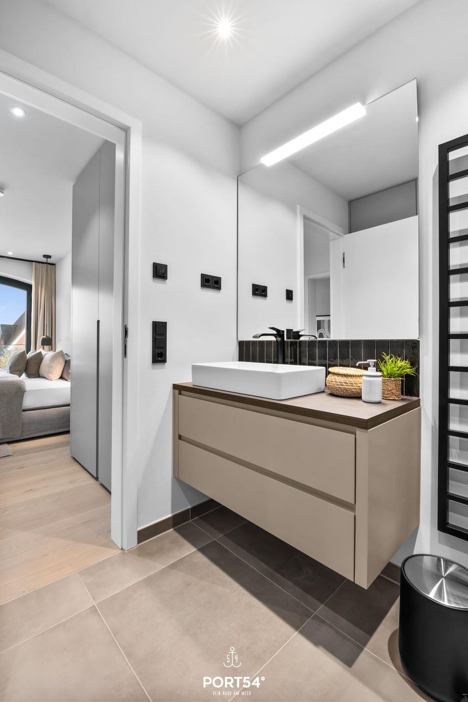 Das moderne Schlafzimmer bietet Ihnen mit einem 180x200cm großen Doppelbett optimalen Schlafkomfort. Das Badezimmer ist mit einer bodengleichen Dusche ausgestattet und bietet Ihnen höchsten Komfort und einen Hauch von Luxus. Hier können Sie sich perfekt entspannen, bevor Sie die Schönheit von Sylt erkunden. In der Dusche ist eine Infrarotsauna integriert, perfekt um nach einem Spaziergang zu entspannen. Genauso können Sie es sich natürlich vor dem Ethanol Kamin gemütlich machen.