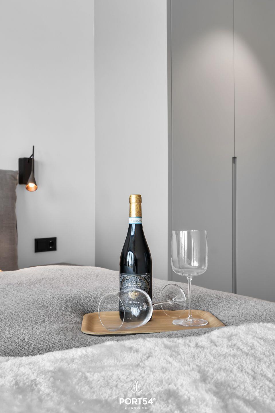 Viele Möbel der hochwertigen Einrichtung stammt aus dem Hause der Bornhold Manufaktur in Hamburg und wurden nach Maß angefertigt, Marken wie Schramm, ASCO, Jacaranda, Christine Knöcke und VIPP stehen für den Anspruch und die Qualität in dieser Ferienwohnung.