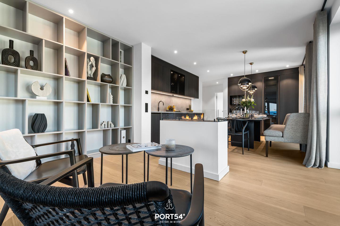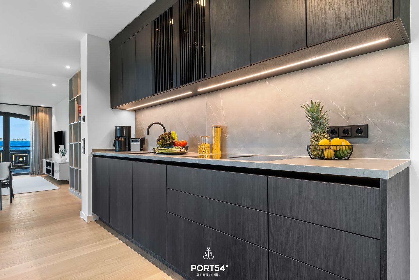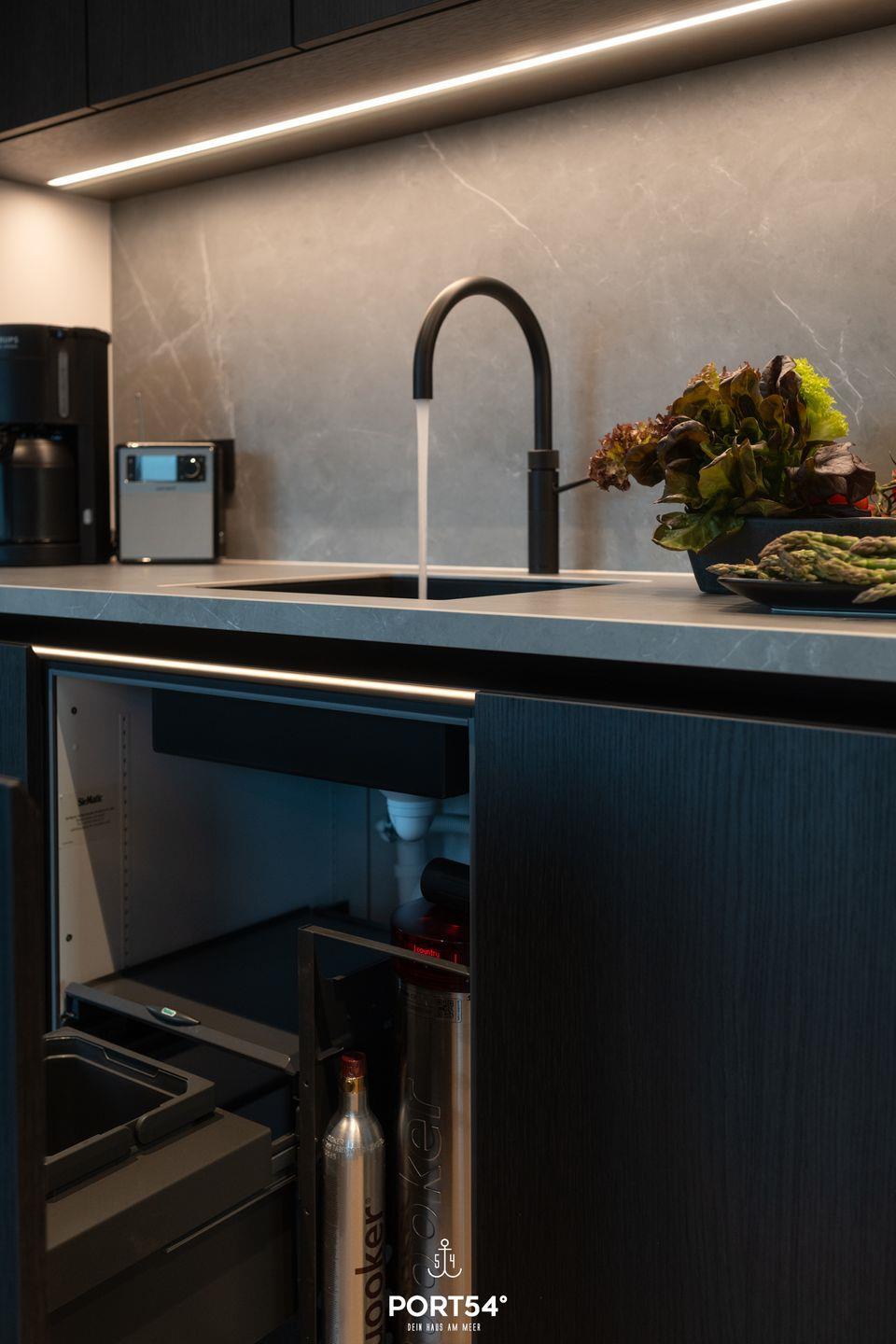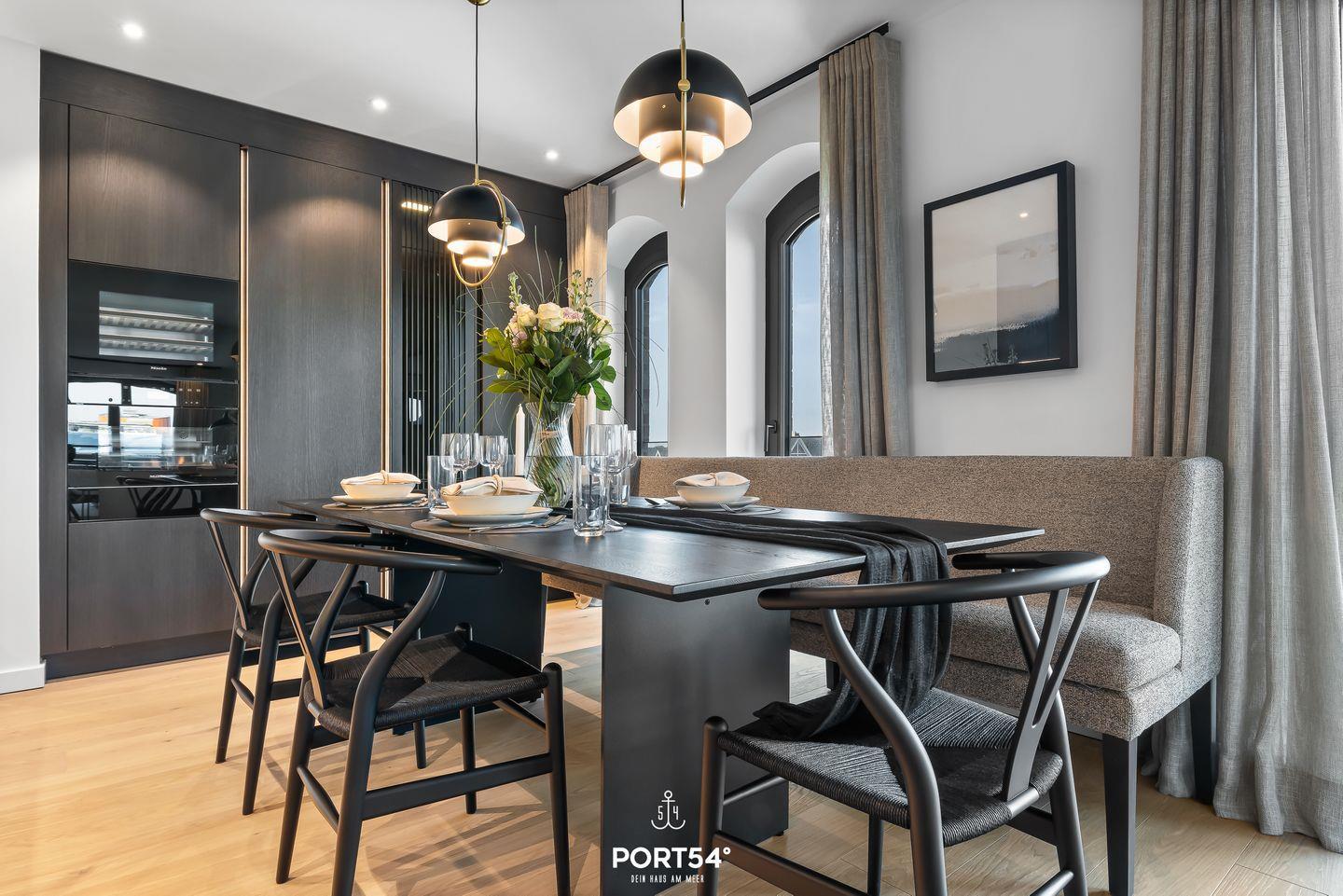 Der Wohnbereich ist ideal, um nach einem erlebnisreichen Tag zu entspannen. Ein gemütliches Sofa, ausgestattet mit einem offenen Ethanol Kamin, lädt dazu ein, es sich mit einem guten Buch oder einem Film gemütlich zu machen. Von hier aus haben Sie direkten Zugang zu Ihrem eigenen Balkon, wo Sie den Blick auf die umliegende Landschaft oder einen romantischen Sonnenuntergang genießen können. Gartenmöbel stehen Ihnen zur Verfügung, sodass Sie im Freien verweilen und die frische Nordseeluft genießen können.