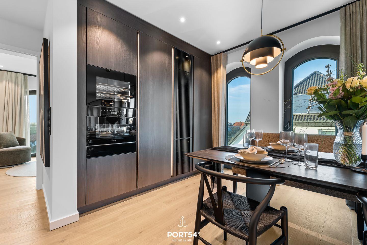 Viele Möbel der hochwertigen Einrichtung stammt aus dem Hause der Bornhold Manufaktur in Hamburg und wurden nach Maß angefertigt. Die 180x200cm großen Betten von Schramm sowie Möbel von Marken wie ASCO, Jacaranda, Christine Knöcke und VIPP stehen für den Anspruch und die Qualität in dieser Ferienwohnung.