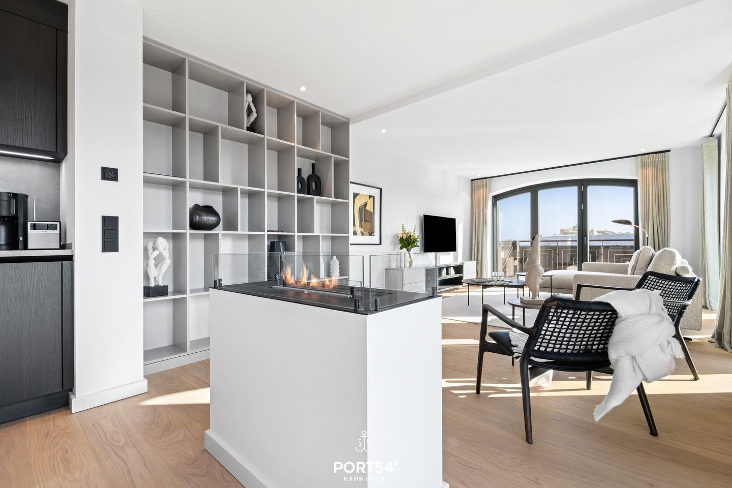 Viele Möbel der hochwertigen Einrichtung stammt aus dem Hause der Bornhold Manufaktur in Hamburg und wurden nach Maß angefertigt, Die Betten von Schramm sowie Möbel von Marken wie ASCO, Jacaranda, Christine Knöcke und VIPP stehen für den Anspruch und die Qualität in dieser Ferienwohnung.