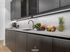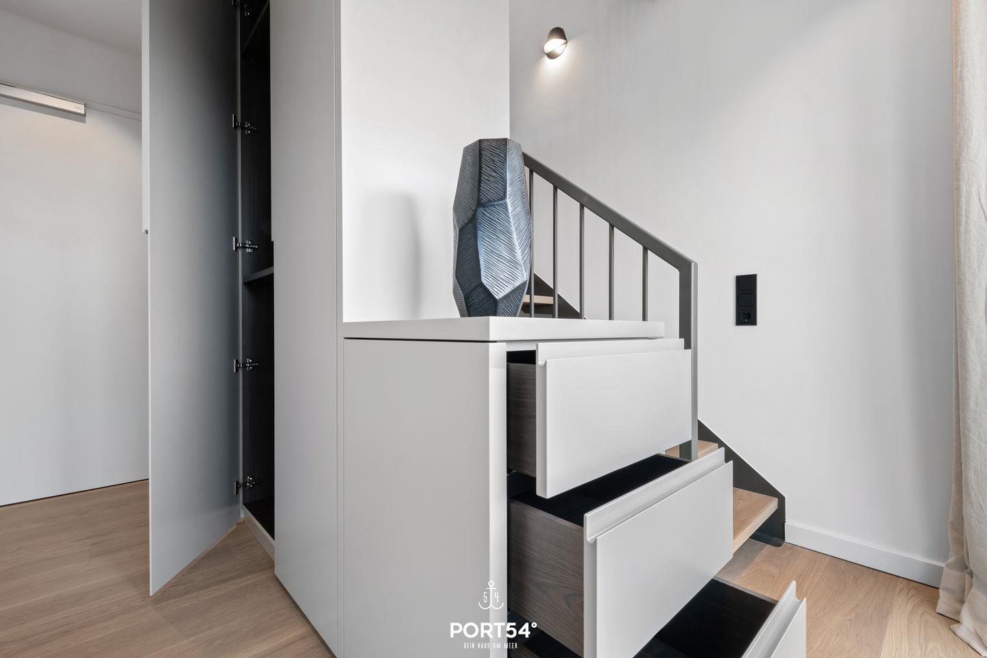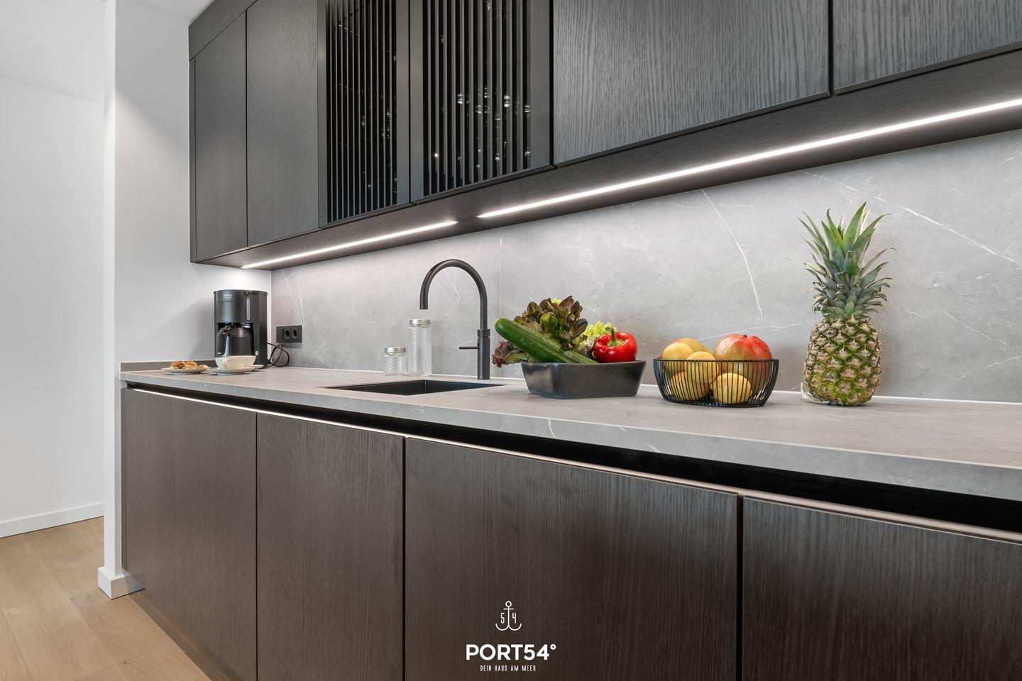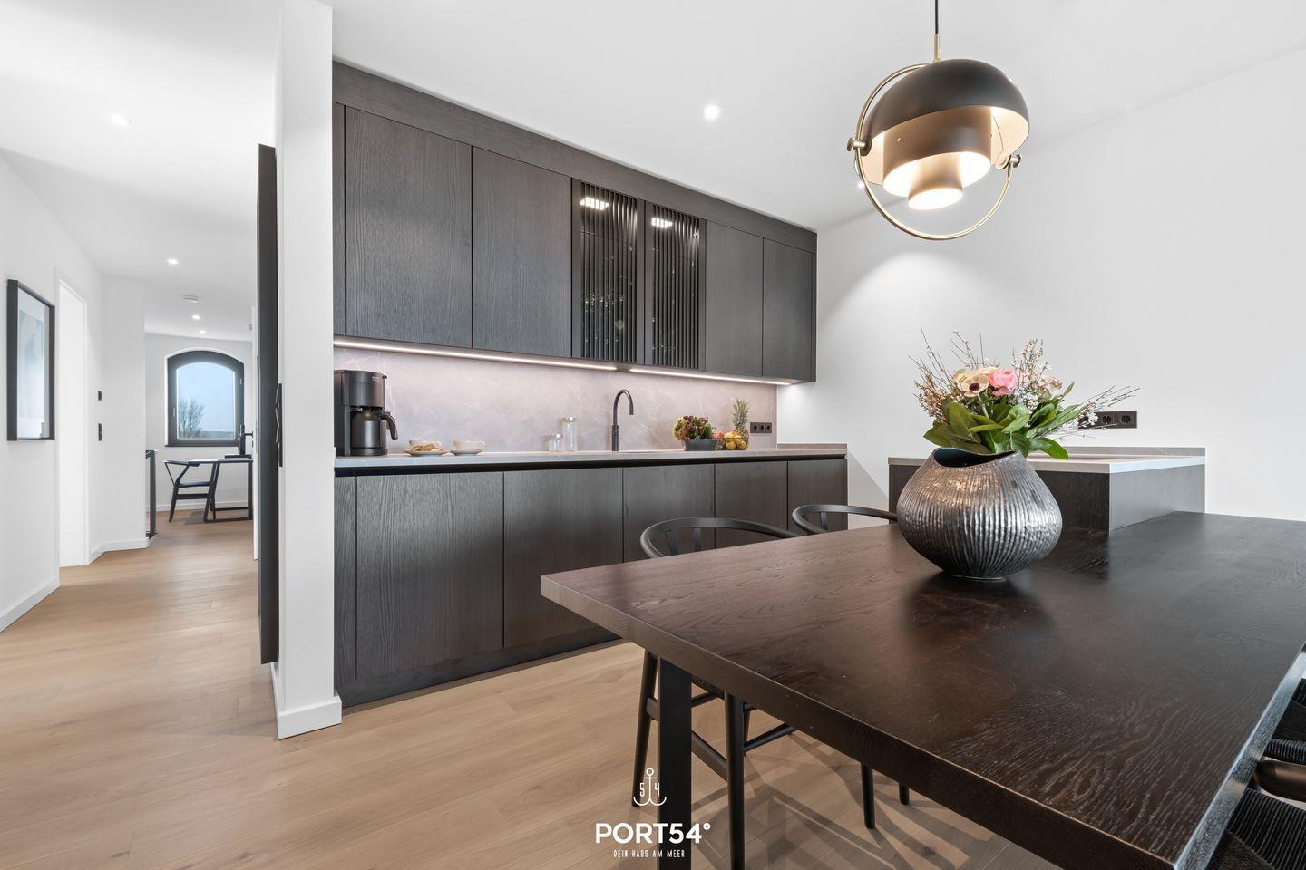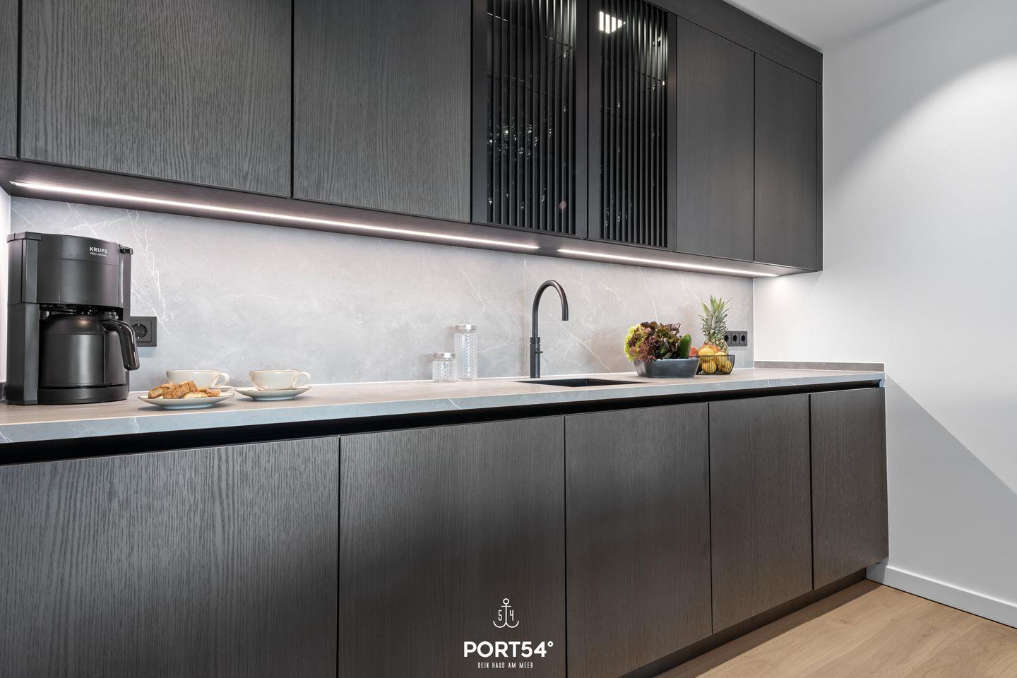 Die moderne Küche von SieMatic lässt keine Wünsche offen: Ausgestattet mit hochwertigen Geräten, wie einem Induktionsherd und einem Elektro-Backofen, lädt sie zum Ausprobieren neuer Rezepte ein. Hier finden Sie alles, was Sie für die Zubereitung Ihrer Lieblingsgerichte benötigen – vom Kühlschrank mit Gefrierfach bis zur Spülmaschine. Die Küche ist außerdem mit einem Quooker ausgestattet, damit lässt sich problemlos heißes Wasser, sowie Sprudelwasser erzeugen. Genießen Sie Ihr Frühstück oder ein romantisches Abendessen auf dem Balkon mit Blick auf die Nordsee, der ebenfalls Gartenmöbel für entspannte Stunden im Freien bereithält.