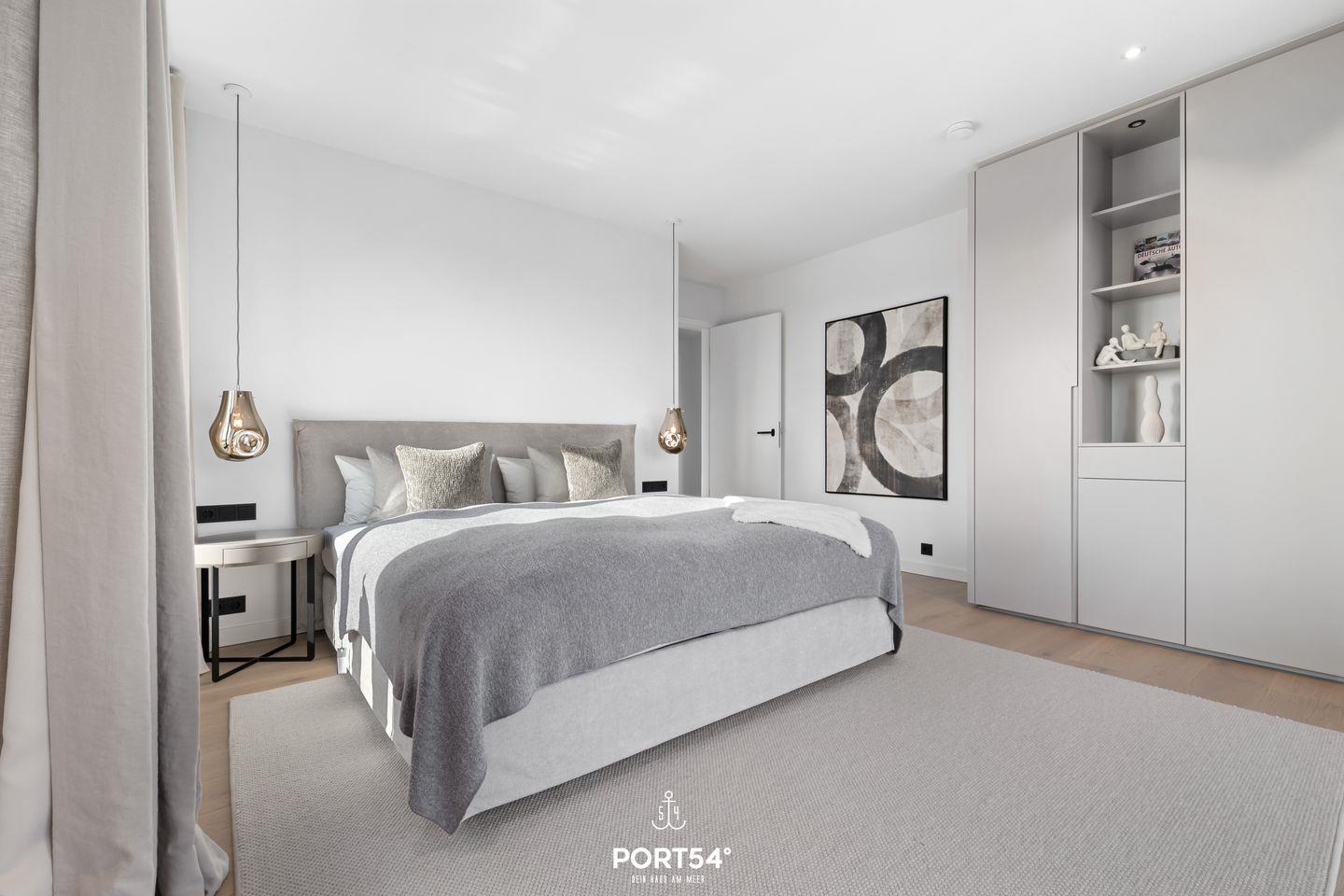 Viele Möbel der hochwertigen Einrichtung stammt aus dem Hause der Bornhold Manufaktur in Hamburg und wurden nach Maß angefertigt, Marken wie Schramm, ASCO, Jacaranda, Christine Knöcke und VIPP stehen für den Anspruch und die Qualität in dieser Ferienwohnung.