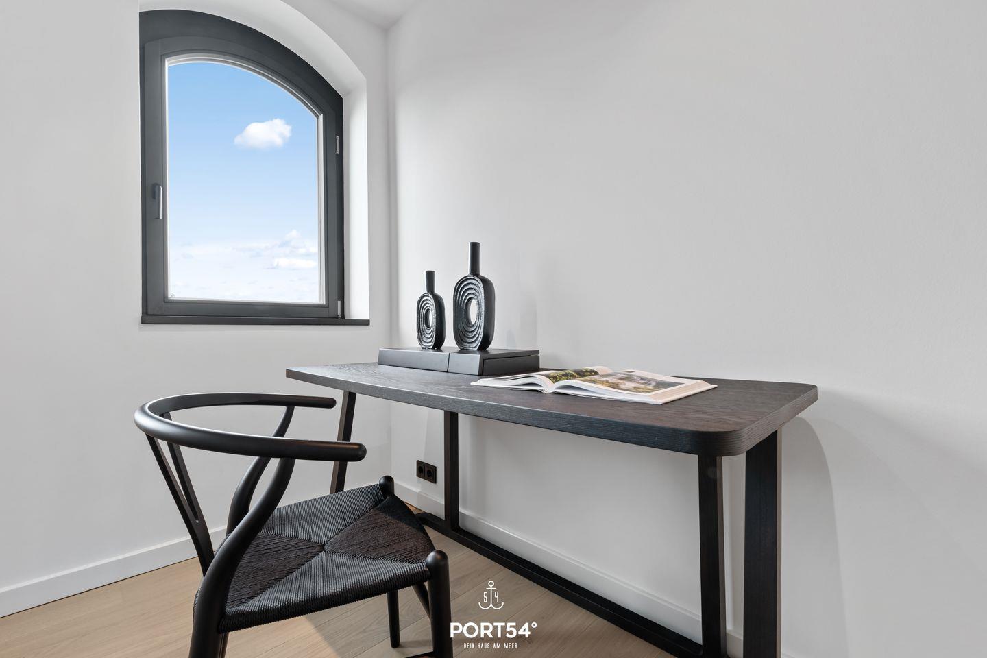 Das Penthouse im zweiten und dritten Stock verfügt über zwei gemütliche Schlafzimmer mit hohen Decken und modernen, 180x200cm großen Doppelboxspringbetten der Marke Schramm. Hier finden Sie den perfekten Ort für erholsamen Schlaf. Neben einem geschmackvoll eingerichteten Wohnzimmer, das zum Verweilen einlädt, erwartet Sie auch ein offener Essbereich, der sich ideal für gemeinsame Mahlzeiten eignet. Die große, mit Fußbodenheizung ausgestattete Fläche sorgt für ein angenehmes Raumklima, während der offene Ethanol Kamin nicht nur Wärme spendet, sondern auch eine behagliche Atmosphäre schafft. Von einem Schlafzimmer aus gelangen Sie über eine Treppe runter in das zweite OG, dort steht ein Schreibtisch für Sie, perfekt für diejenigen, die remote unterwegs sind.