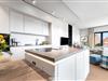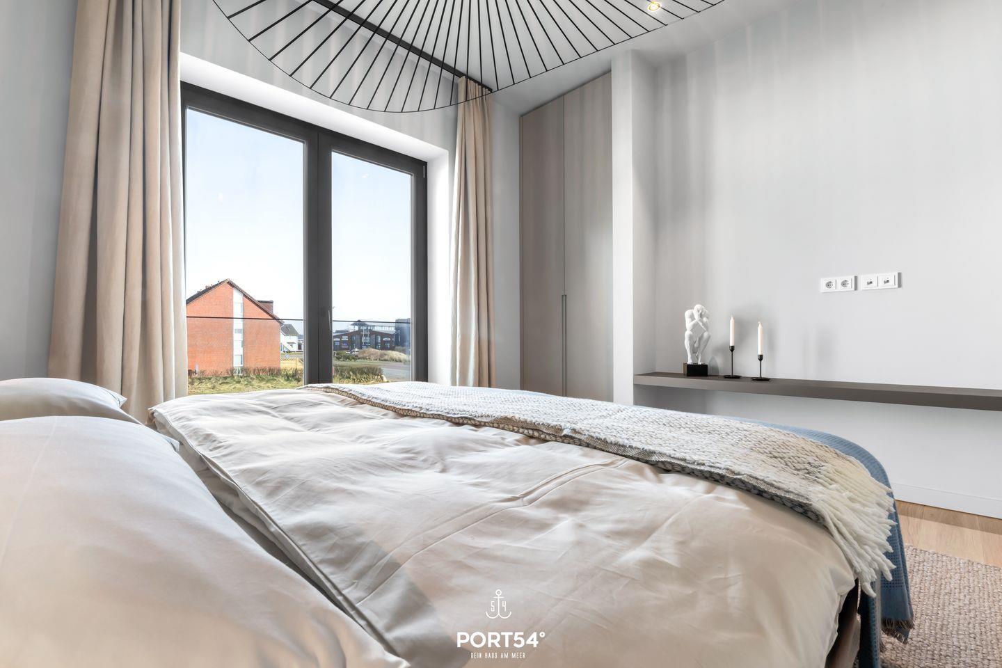 Ein offener Wohnbereich mit großzügiger Sofaecke, Ethanol Kamin und Esstisch lädt zum Verweilen ein und bietet einen perfekten Ort für gesellige Abende. Die voll ausgestattete offene Küche von SieMatic punktet mit modernen Geräten wie einem Induktionsherd, Backofen, Kühlschrank, Spülmaschine und einem Weinkühlschrank. Hier können Sie kreative Gerichte zubereiten oder einfach das Frühstück auf dem Balkon genießen, während Sie die frische Meeresbrise einatmen. Außerdem finden Sie in der Küche einen Quooker, damit lässt sich problemlos heißes Wasser, sowie Sprudelwasser erzeugen.