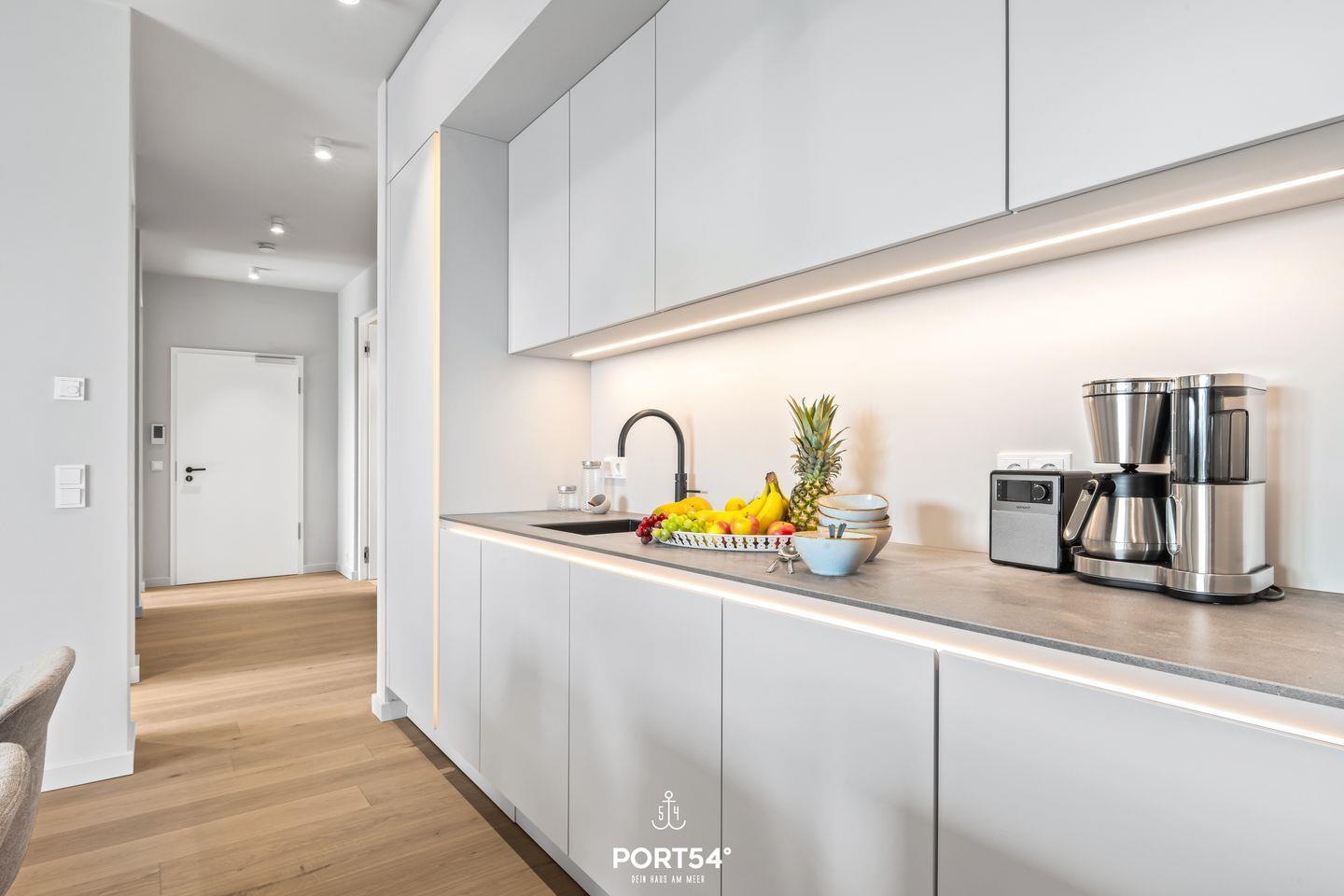 Die Wohnung verfügt über zwei gemütliche Schlafzimmer, die mit viel Liebe zum Detail eingerichtet sind, um Ihnen einen erholsamen Schlaf in jeweils einem gemütlichen Boxspringbett der Marke Schramm (180x200cm) zu garantieren. Der offene Wohnbereich lädt zum Verweilen und Entspannen ein, ausgestattet mit einem komfortablen Sofa und einem Tisch für gemeinsame Essens- oder Spielemomente. Die offene SieMatic Küche ist modern eingerichtet und bietet alles, was das Herz begehrt – von einer Induktionsplatte bis hin zu einer Spülmaschine, damit Sie alle Annehmlichkeiten des alltäglichen Lebens genießen können. Außerdem finden Sie in der Küche einen Quooker, damit lässt sich problemlos heißes Wasser, sowie Sprudelwasser erzeugen. Ein Highlight der Marina Suite ist die bodengleiche Dusche mit integriertem Infrarotpaneel. Diese ist perfekt, um nach einem aufregenden Tag an der frischen Luft zu entspannen und sich zu regenerieren. Der offene Ethanol-Kamin sorgt für eine warme und gemütliche Atmosphäre, die besonders in den kühleren Monaten das Herz höher schlagen lässt. Für Ihr gesamtes Wohlbefinden steht Ihnen kostenloses WLAN zur Verfügung, sodass Sie jederzeit mit der Außenwelt verbunden bleiben können. Zudem gibt es einen Smart TV, um Entspannung nach einem Tag voller Erlebnisse zu bieten.
