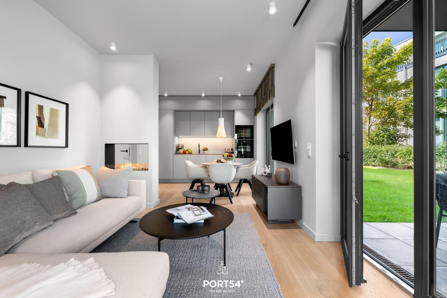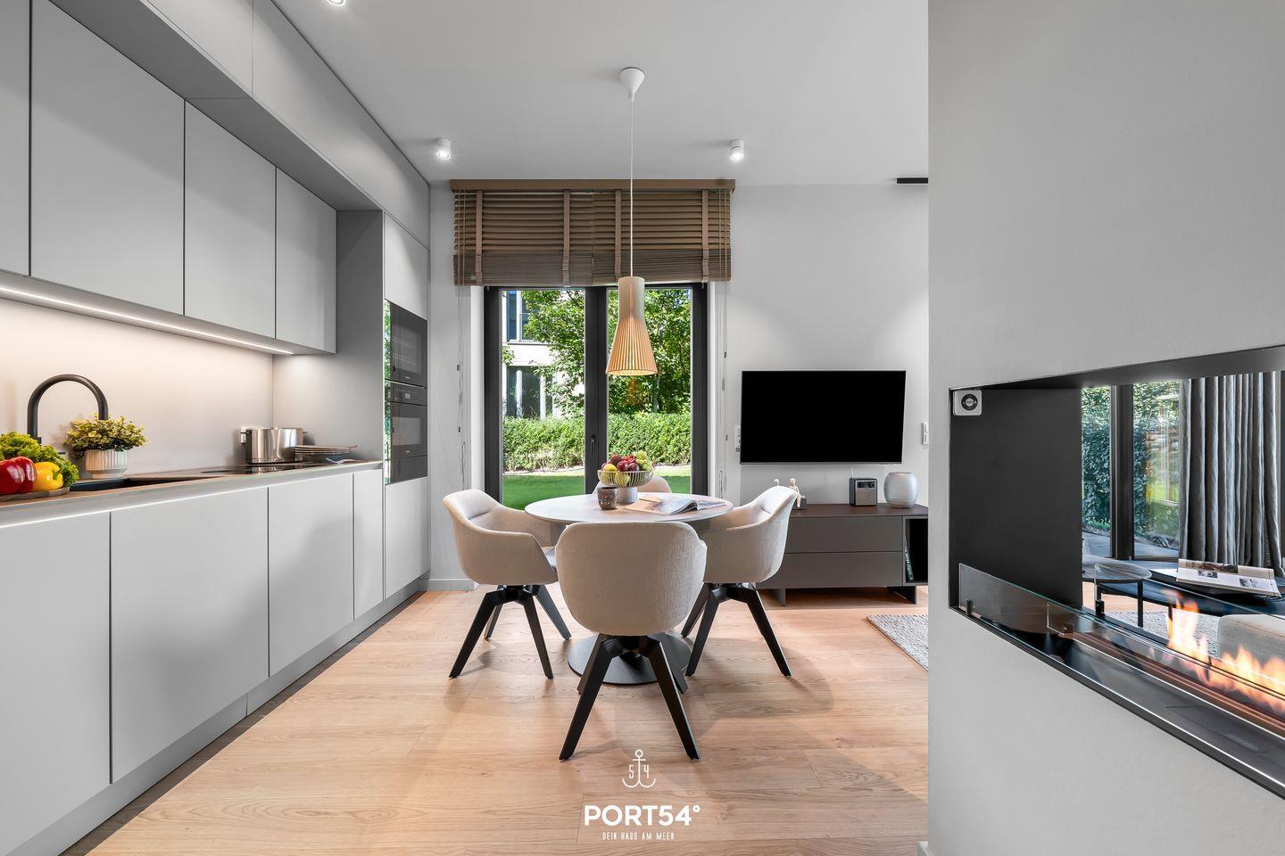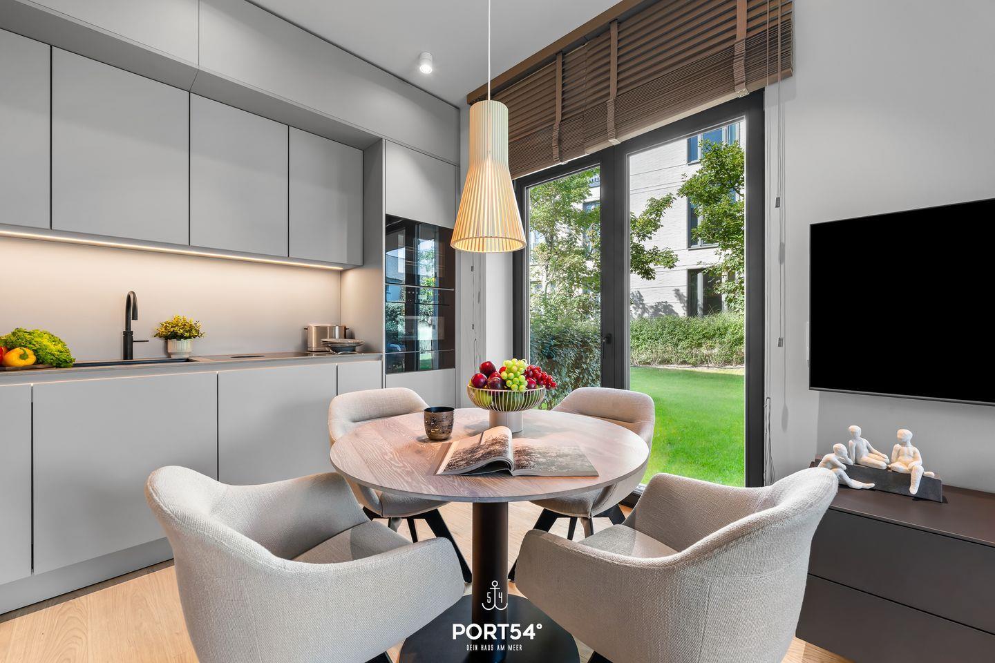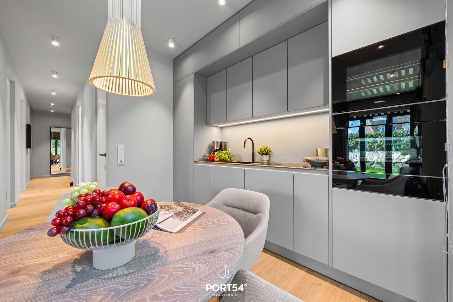 Herzstück der Wohnung ist der offene Wohnbereich, der Hell und einladend ist. Die moderne Küche von SieMatic ist mit einem Induktionsherd, Backofen, Wärmeschublade und einem Geschirrspüler voll ausgestattet. Außerdem finden Sie in der Küche einen Quooker, damit lässt sich problemlos heißes Wasser, sowie Sprudelwasser erzeugen. Für gemütliche Abende steht Ihnen ein bequemer Sofabereich zur Verfügung, um die Zeit gemeinsam zu verbringen oder einen Film auf dem Smart-TV zu genießen.