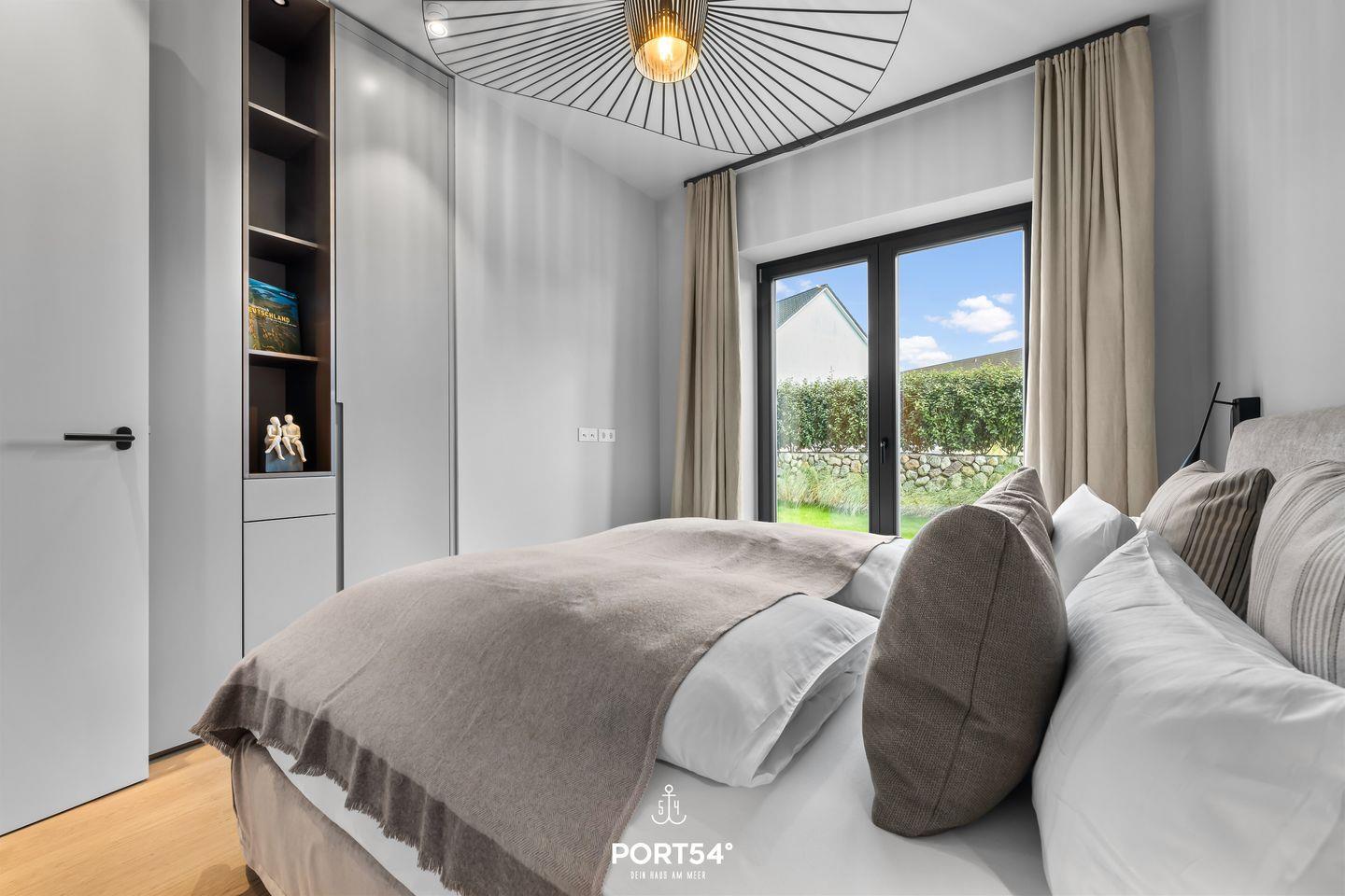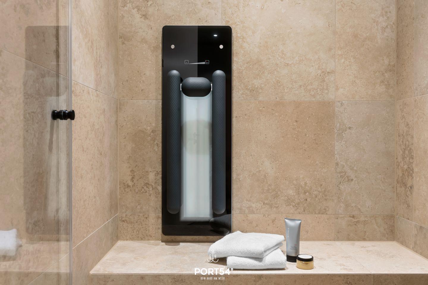 Die Coastal Suite ist mit zwei komfortablen Schlafzimmern ausgestattet, die Ruhe und Entspannung versprechen. Jedes Schlafzimmer, eins ausgestattet mit einem Doppelboxspringbett der Marke Schramm (180x200cm), das andere mit einem Schlafsofa (160x200cm), ist geschmackvoll eingerichtet und bietet den idealen Raum für erholsame Nächte nach einem aufregenden Tag an der frischen Luft. In dem elegant gestalteten Badezimmer mit bodengleicher Dusche und eingebautem Infrarotpaneel können Sie sich einfach mal Entspannen.