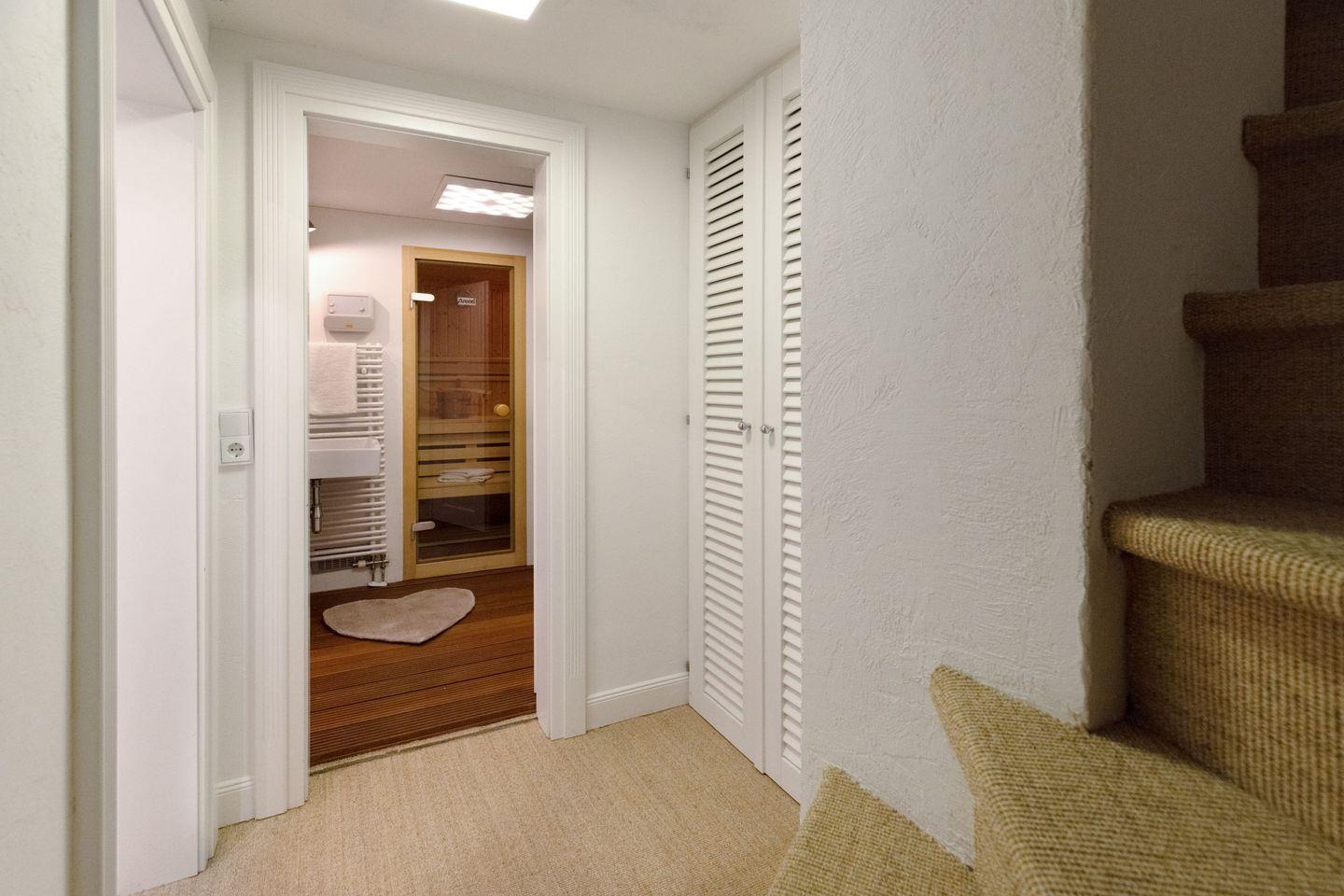 Eine große Sauna mit zusätzlicher Dusche ist ebenfalls vorhanden.