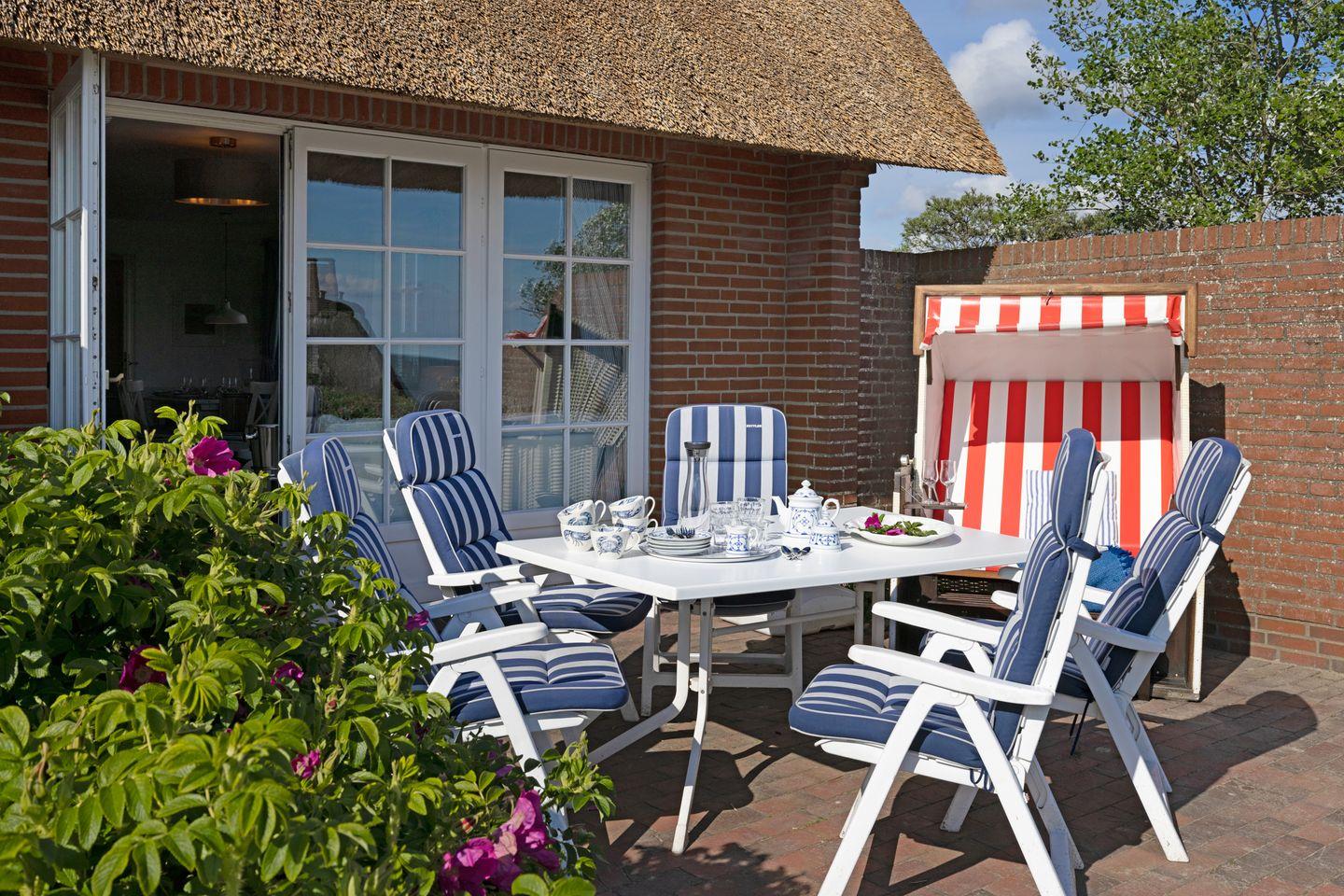 Erholen Sie sich in einem exklusiven, reetgedeckten Reihenendhaus in der Ferienhaussiedlung Mellhörn am Lister Oststrand.