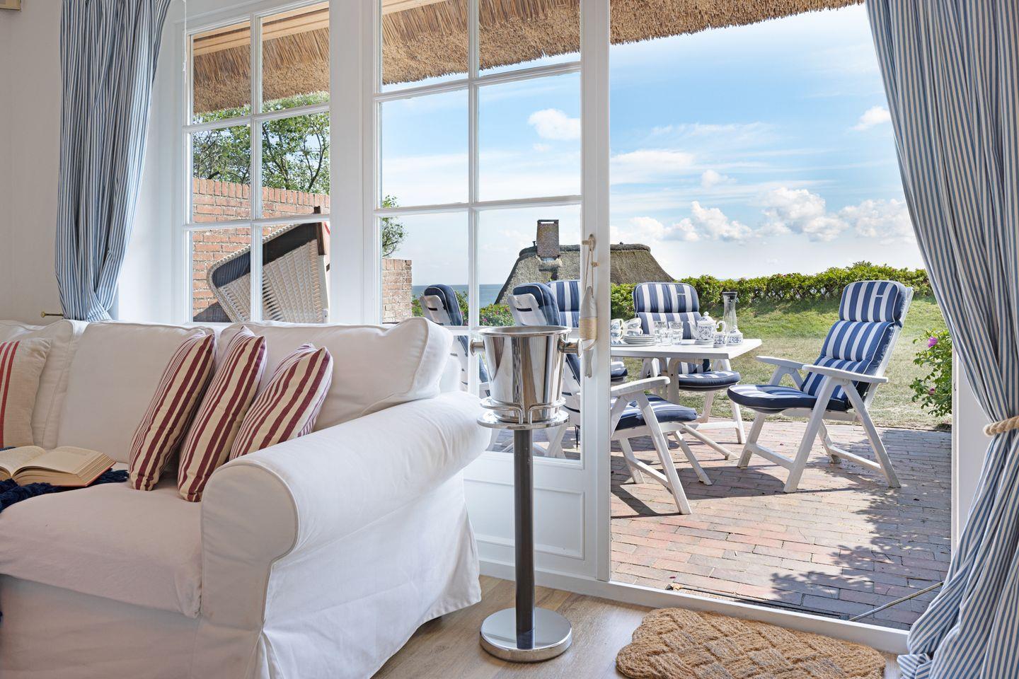 Exklusives Ferienhaus unter Reet mit Sauna und Meerblick am Lister Oststrand für erholsame Tage.