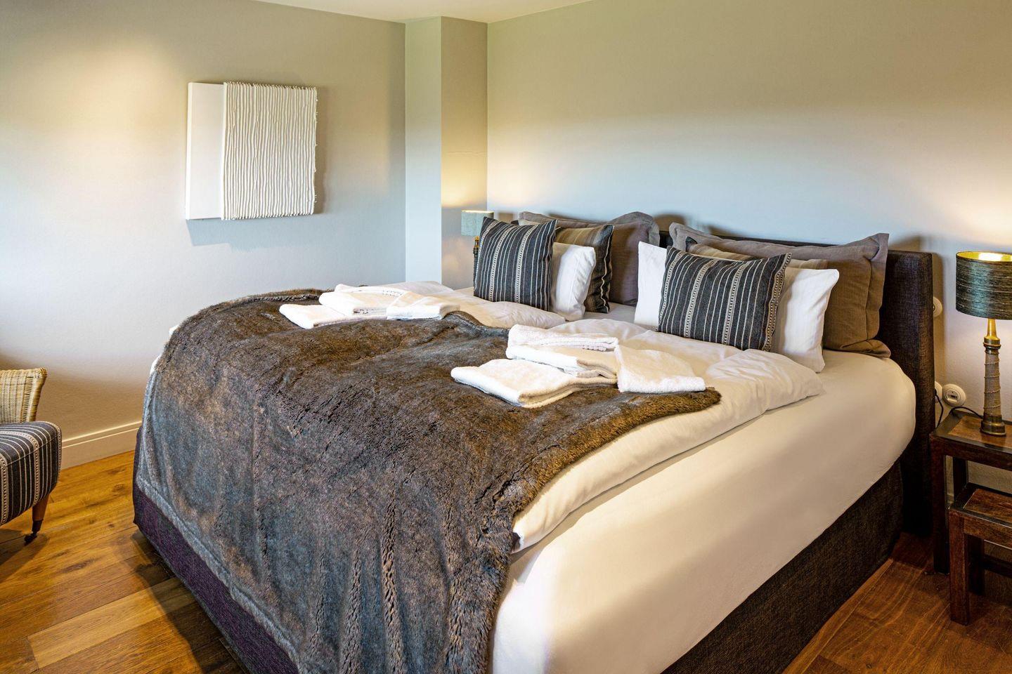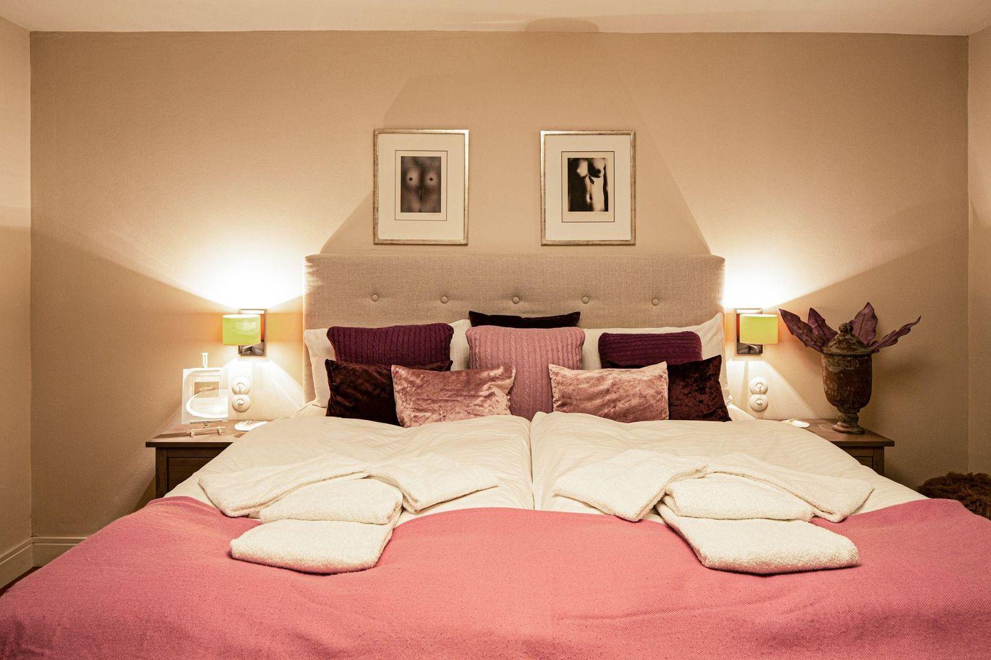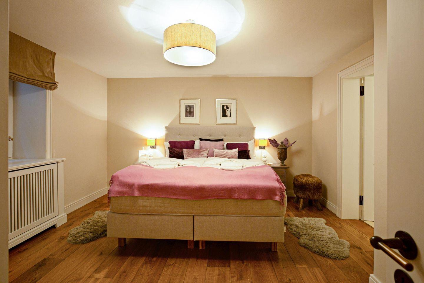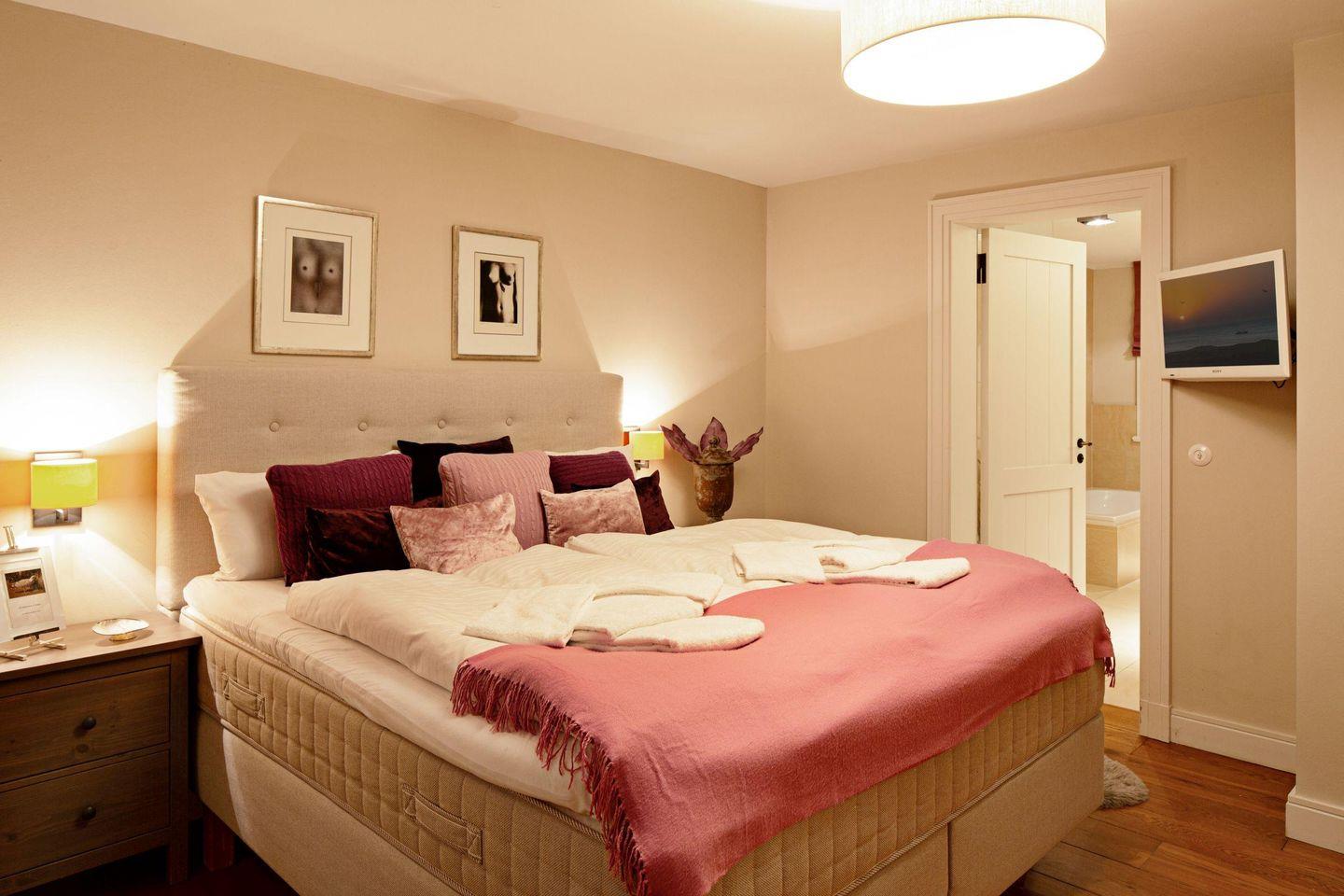 Ein weiteres Schlafzimmer mit Doppelbett und Bad liegt im Souterrain.