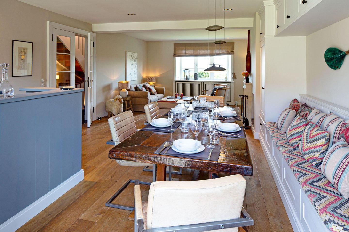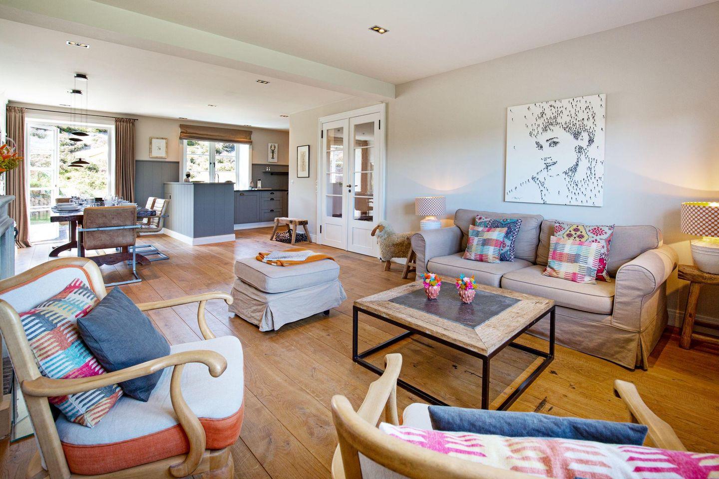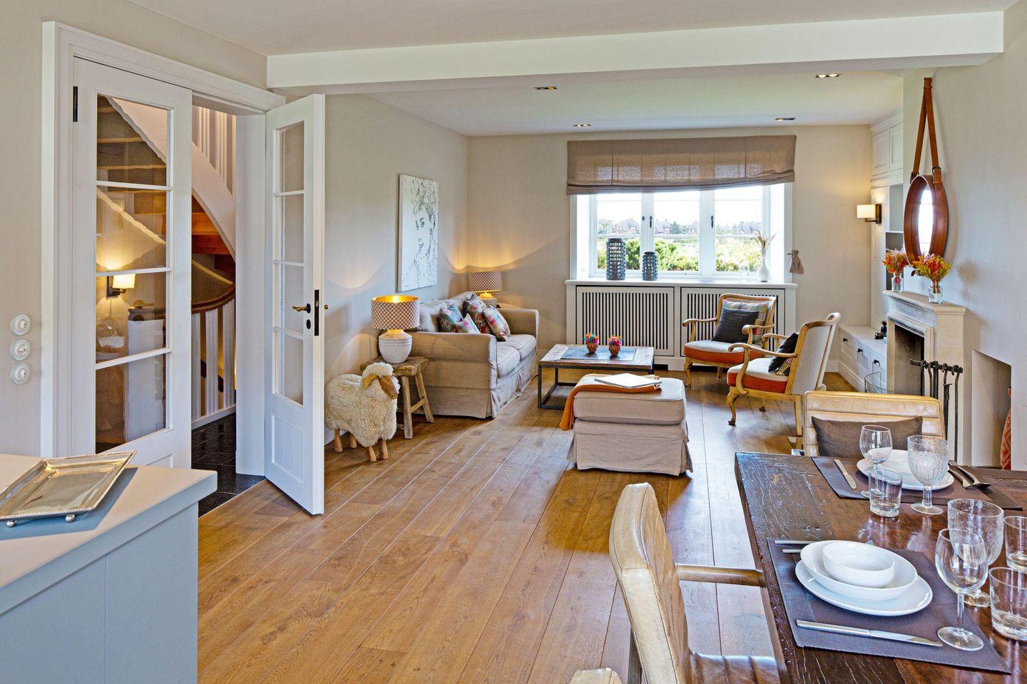 Luxuriöses Feriendoppelhaus mit Sauna, offenem Kamin und großem Garten in ruhiger Lage nahe dem Strand.