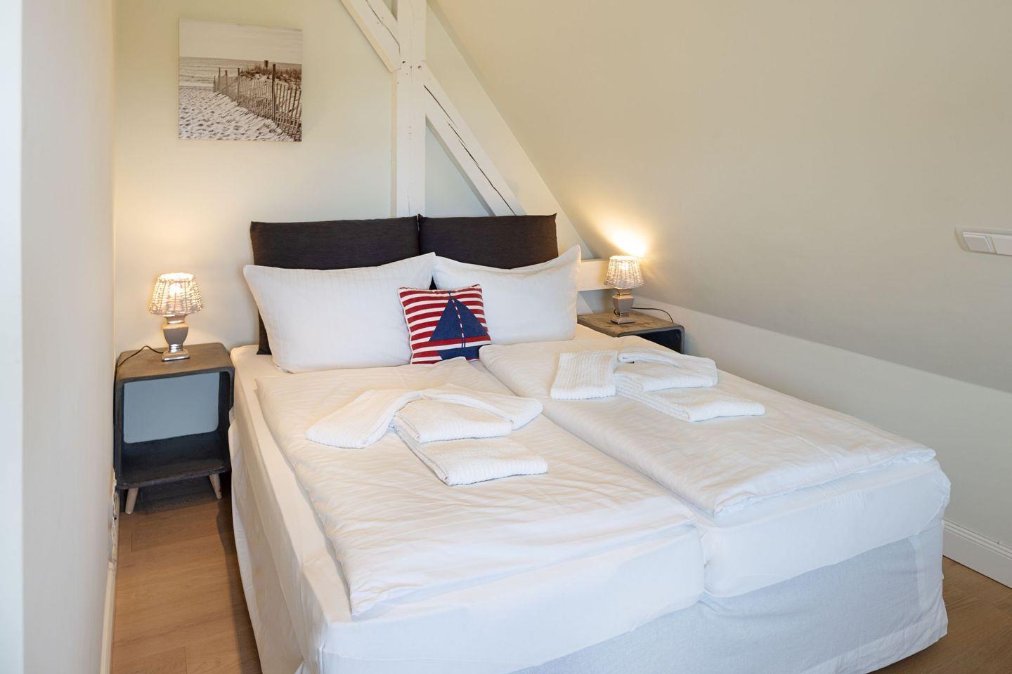 Ihr Modernes Feriendomizil (120 m²) verfügt im 1. Stock über zwei Schlafzimmer mit Doppelbett.