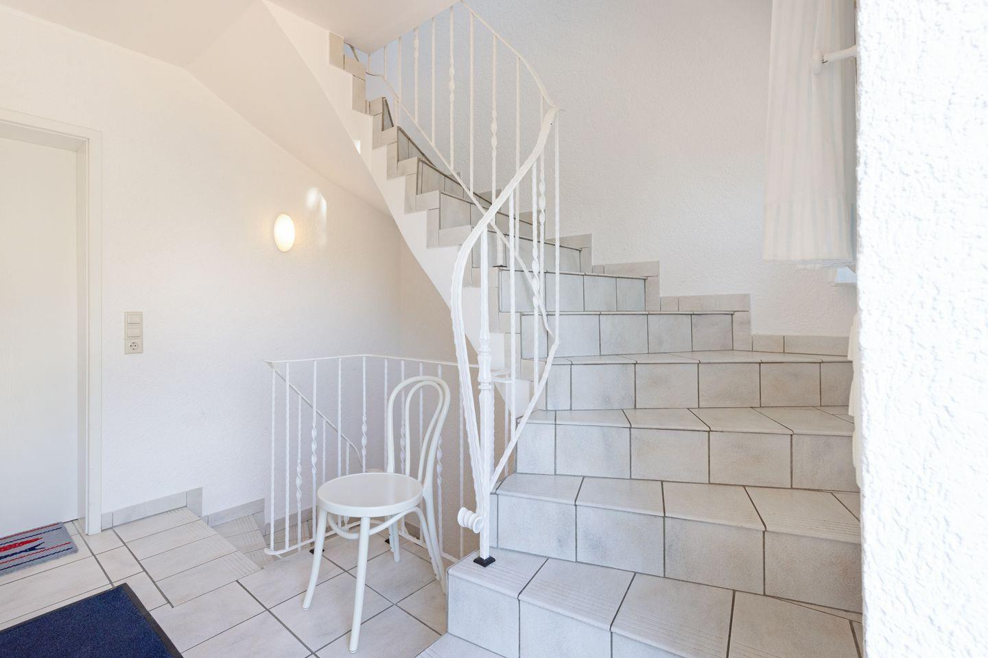 Sie haben einen eigenen Balkon (saisonal mit Gartenmöbel) und zusätzlich steht eine Sonnenkuhle mit Strandkorb im gemeinschaftlichen Garten zur Verfügung.