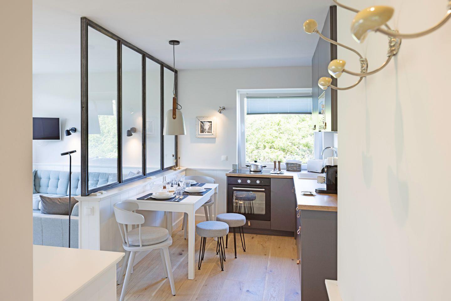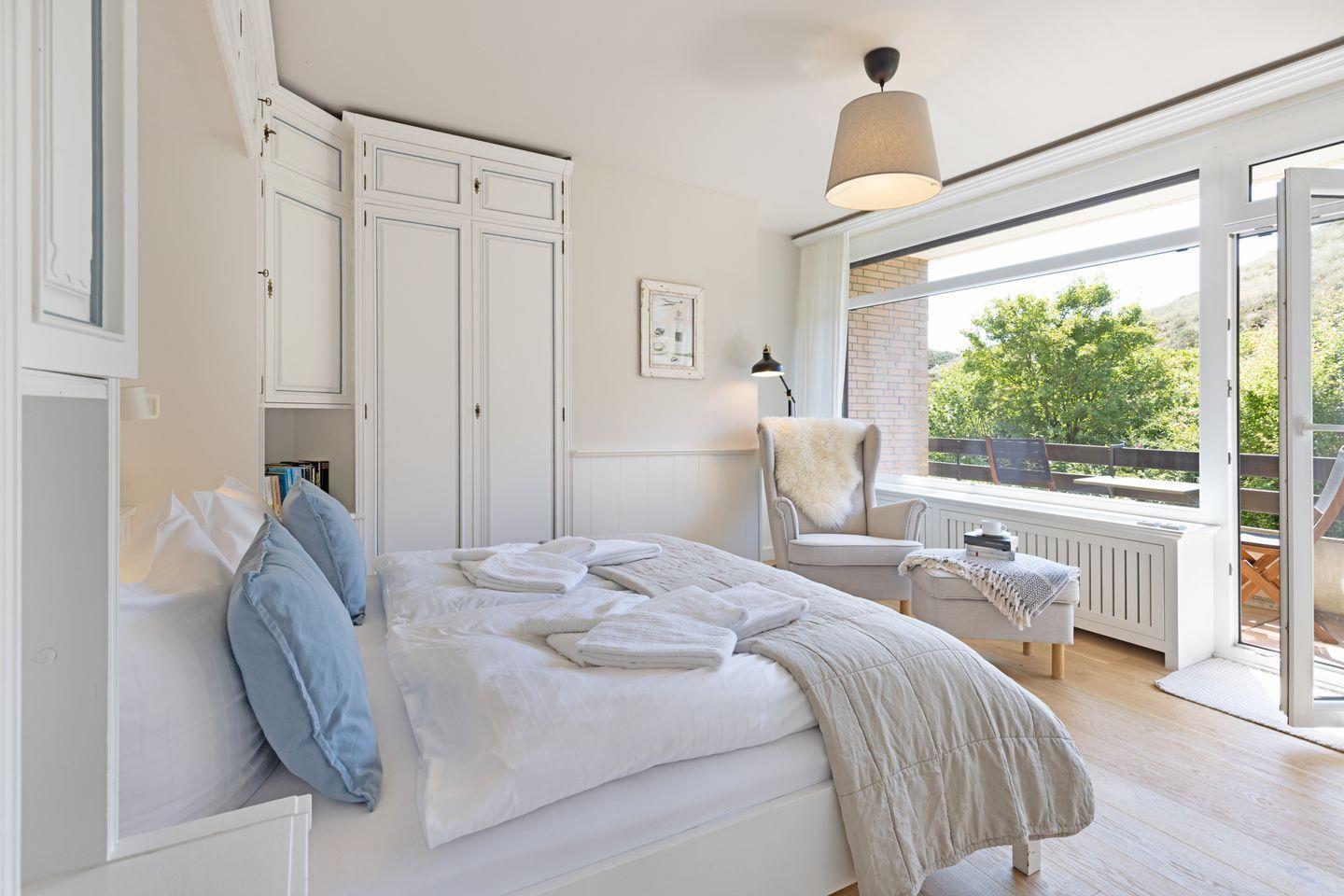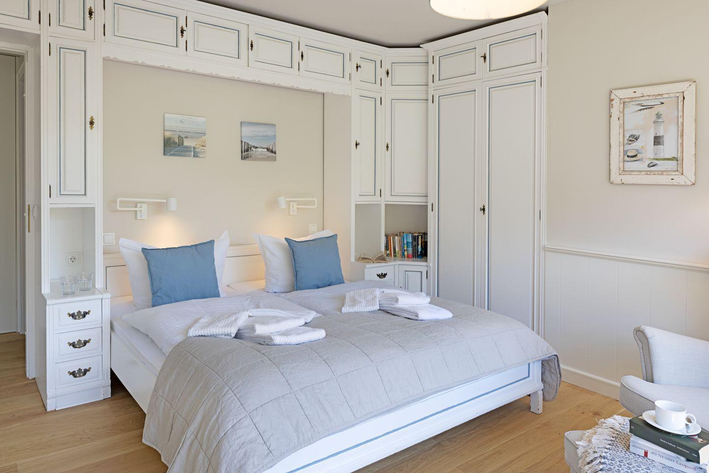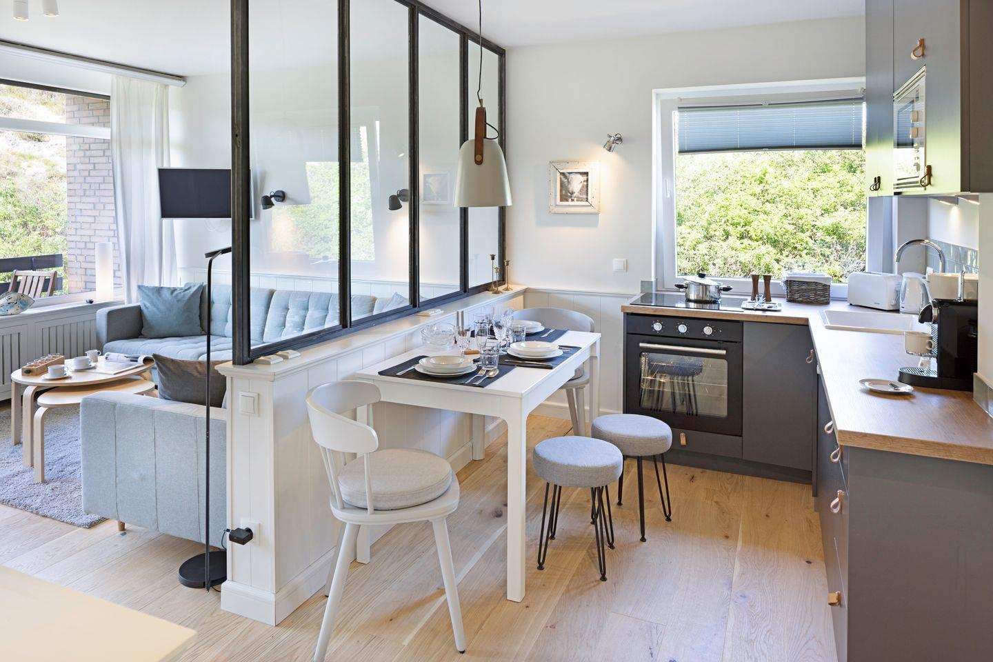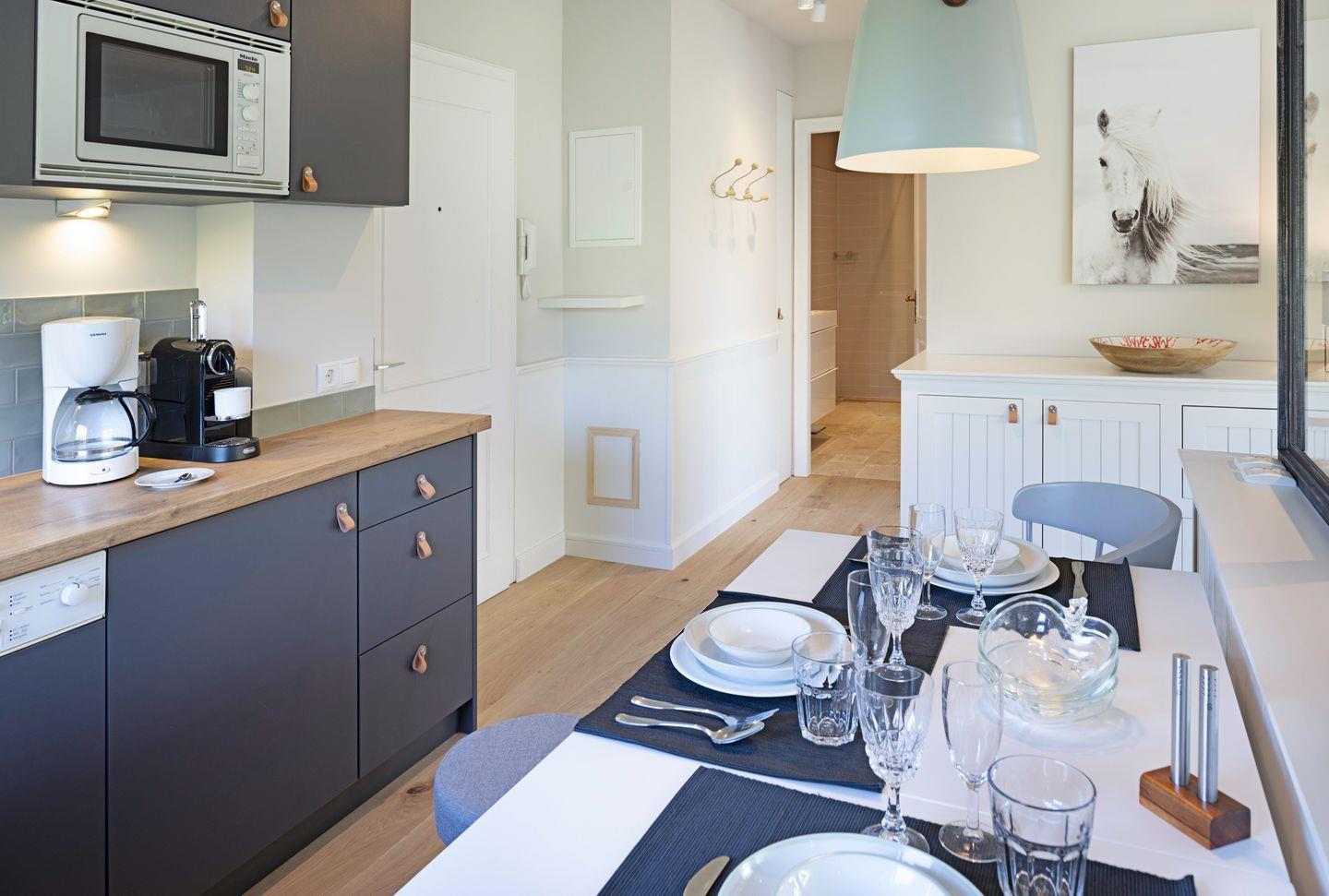 Willkommen in Ihrem Appartement "Heideblick" direkt am Naturschutzgebiet Königshafen. Die im Hochparterre liegende 60m² große Ferienwohnung für bis zu 4 Personen hat ein separates Schlafzimmer mit Doppelbett und ein im Wohnzimmer befindliches Doppel-Schrankbett. Vom Wohnzimmer kommen Sie auf den Balkon mit Blick auf die Dünen.