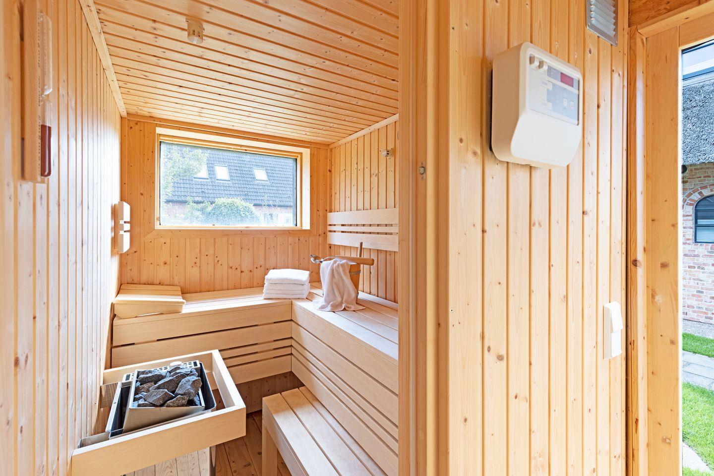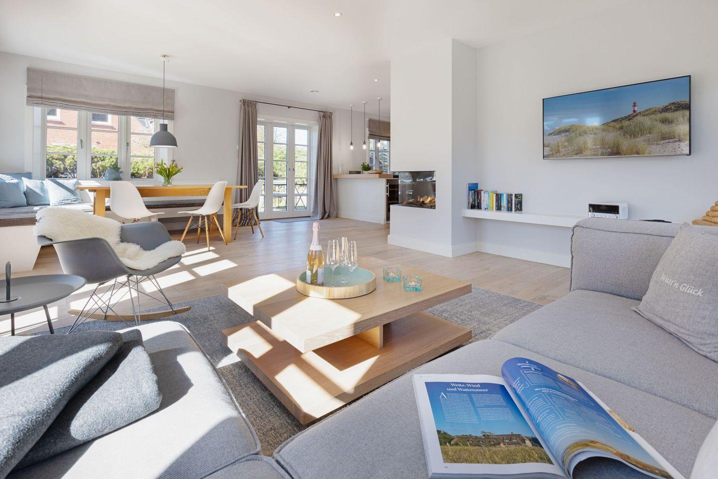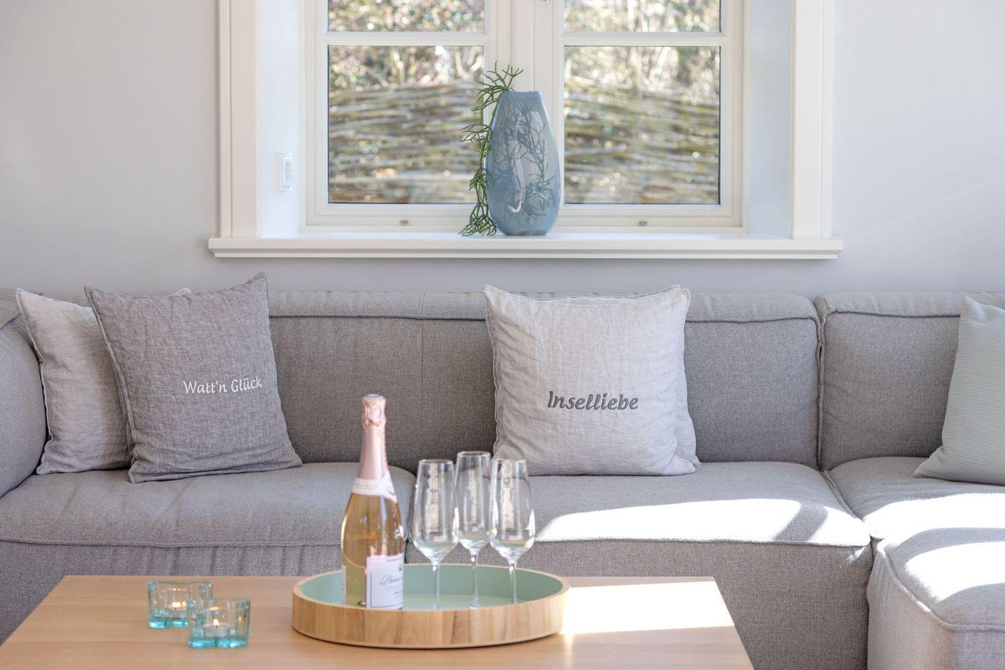 Hochwertiges Feriendoppelhaus Nordic Breeze mit Kamin, Sauna, Luxus-Küche und Terrasse nahe Naturschutzgebiet Königshafen.