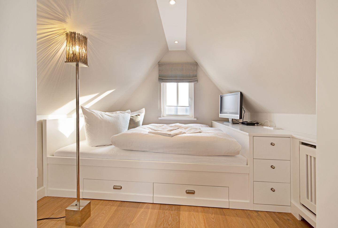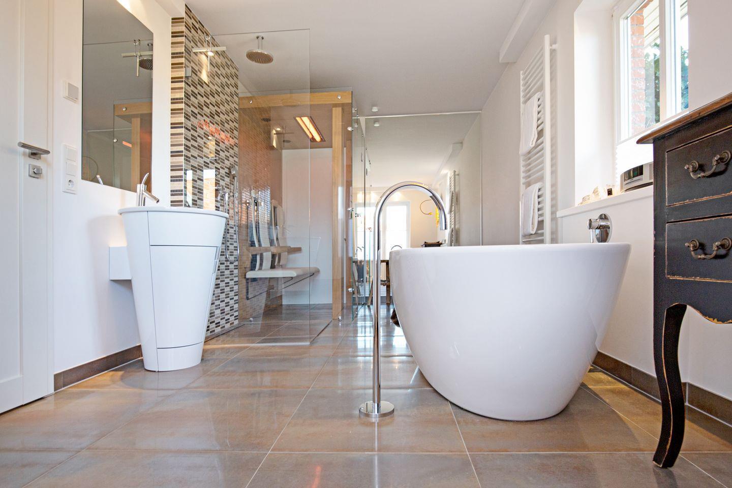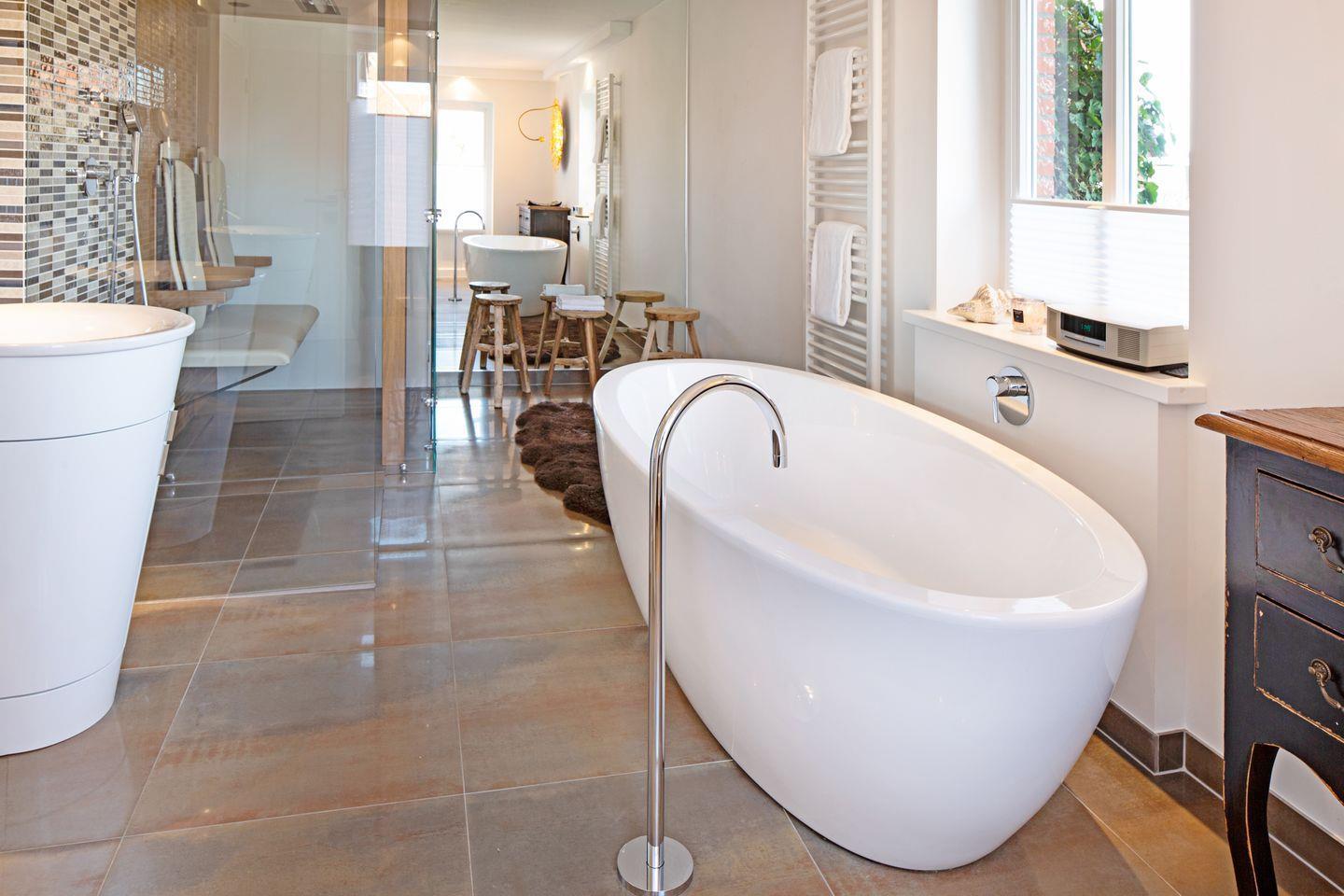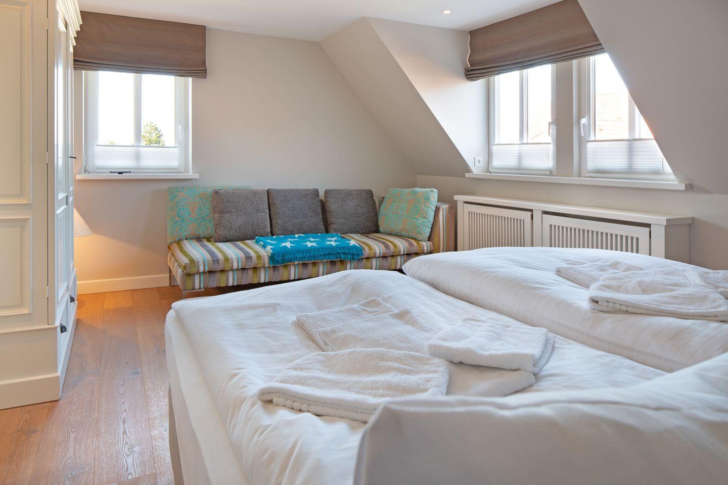 Genießen Sie die sonnige Terrasse in Ihrem Strandkorb, entspannen Sie in der (Infrarot-)Sauna oder der freistehenden Badewanne mit direktem Zugang zum Garten (EG) mit Blick auf die Syltrosen. Im 1. Stock befinden sich zwei Schlafzimmer (eins mit Schreibtisch) und ein Bad. Im Dachgeschoss (stark ansteigende Treppe) befindet sich ein weiteres Arbeitszimmer und einem Bad.