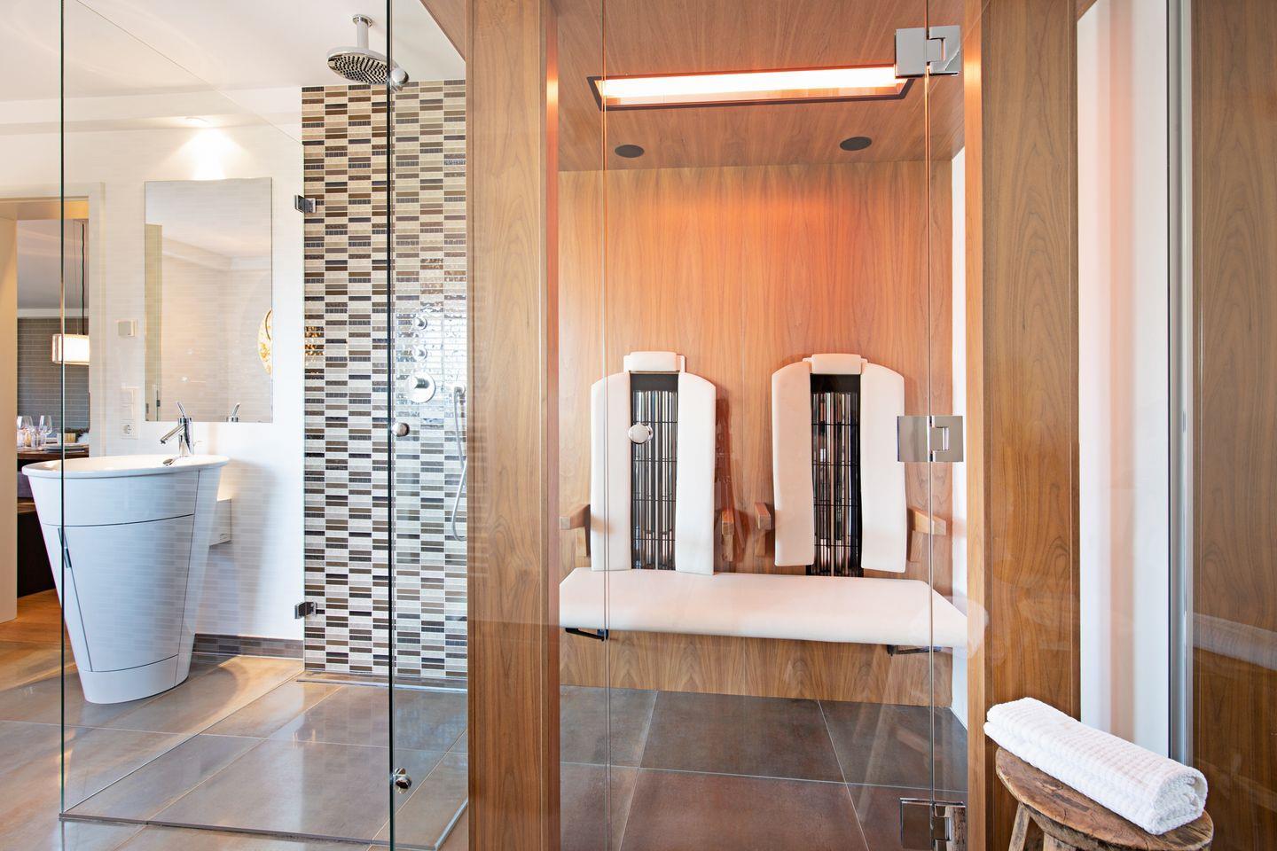Erleben Sie den farbenfrohen Sonnenuntergang von der windgeschützten Holzterrasse. Sie können Ihr Auto an der hauseigenen Wallbox laden.