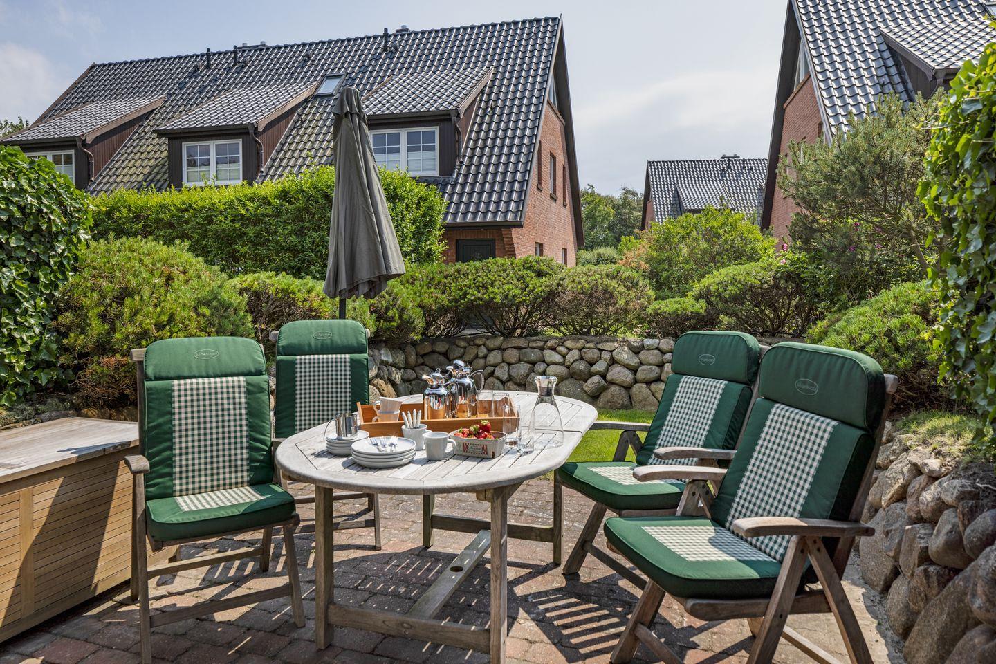 Die großzügige Terrasse ist ein idealer Ort, um den Tag bei einem Glas Wein und herrlichem Gartenblick ausklingen zu lassen.