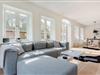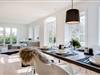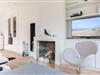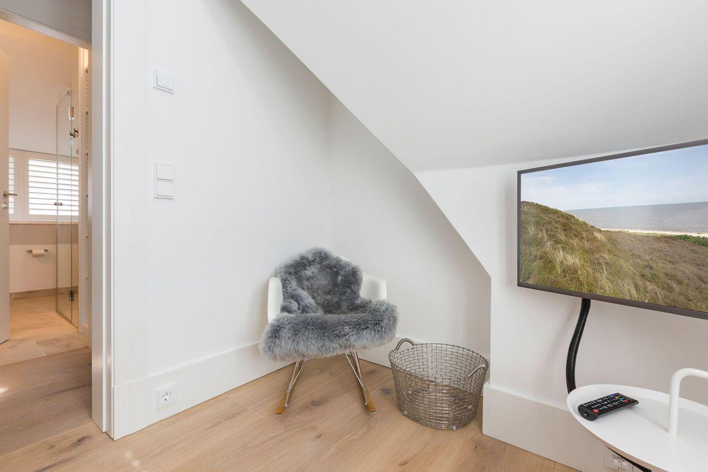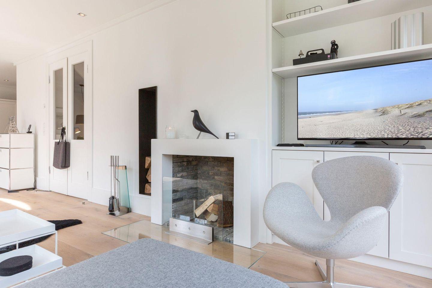 Das großzügige Wohnzimmer besticht durch nordisches Design und hochwertigen Komfort. Ein gemütlicher Kamin sorgt für wohlige Wärme an kühleren Abenden, während die großen Fensterfronten viel Licht hereinlassen und Ihnen direkten Zugang zum weitläufigen Garten und zu den beiden Terrassen bieten. Hier können Sie sich nach einem Tag am Strand entspannen, die Sonne genießen oder den Abend bei einem Glas Wein ausklingen lassen.