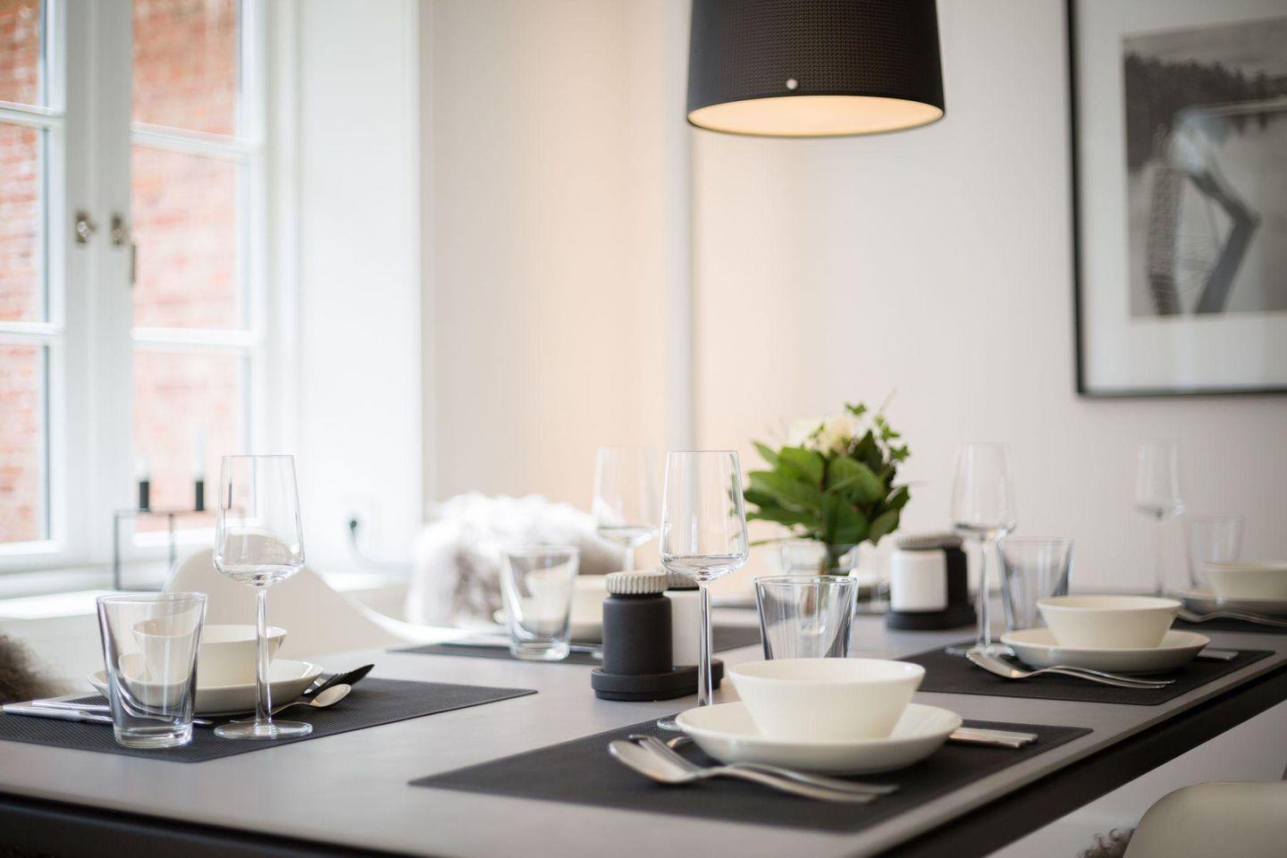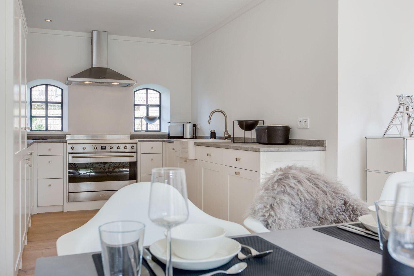 Die offene Wohnküche ist mit modernster Technik ausgestattet, darunter ein Induktionsherd, eine Filterkaffeemaschine und eine Nespresso-Maschine. Hier finden Sie alles, was Sie für die Zubereitung köstlicher Mahlzeiten benötigen. Am modernen Esstisch mit Platz für 6 Personen können Sie Ihre Mahlzeiten gemeinsam genießen oder einen gemütlichen Abend bei einem selbstgekochten Dinner verbringen.