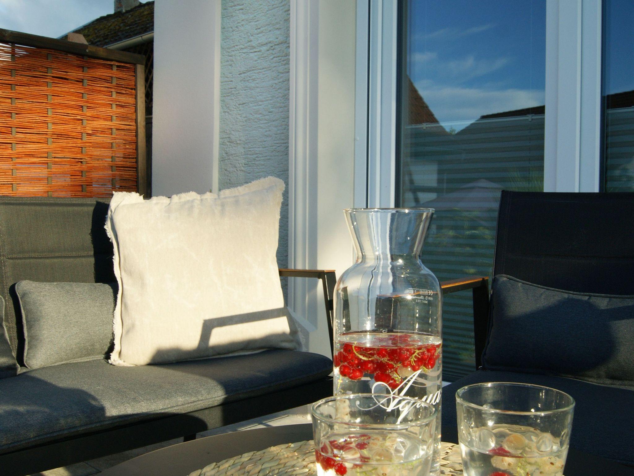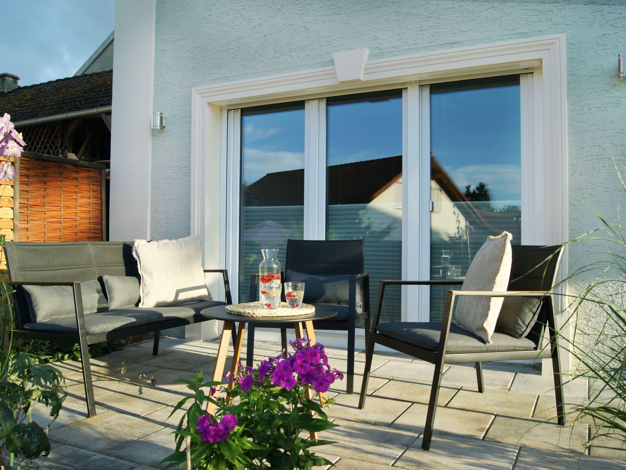 Auf der Terrasse steht Ihnen eine Sitzgruppe zur Verfügung die zum Verweilen oder Kaffee trinken einlädt.
