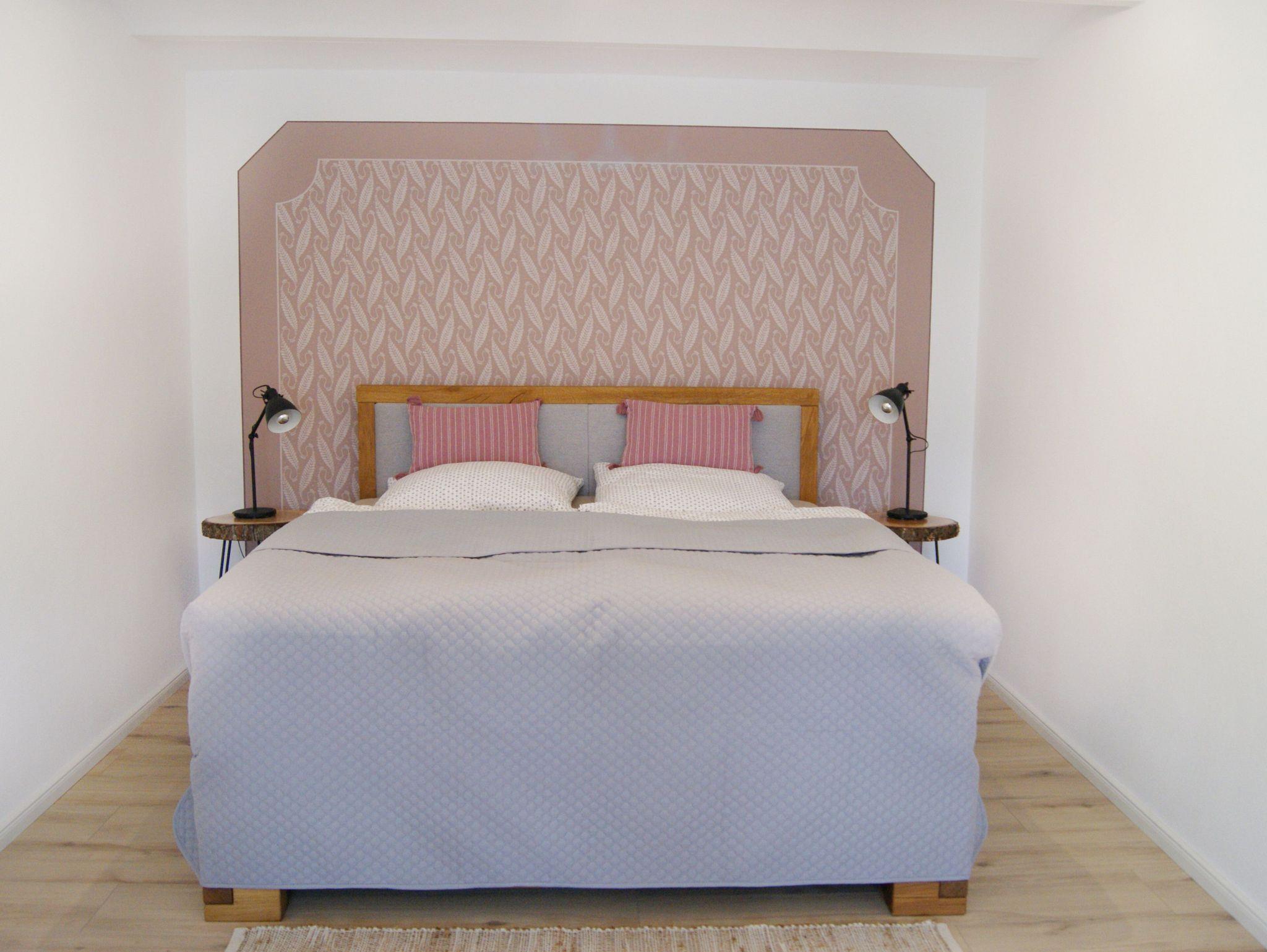 Alle notwendigen Küchenutensilien (Kaffemaschine, Wasserkocher, Geschirr usw.) sind natürlich vorhanden. Der Essbereich bietet ausreichend Platz für 6 Personen zum Frühstücken, Das Schlafzimmer wurde für optimalen Schlafkomfort mit einem Boxspringbett ausgestattet.